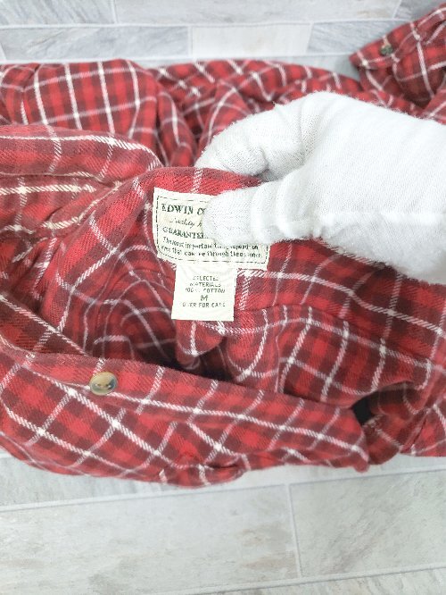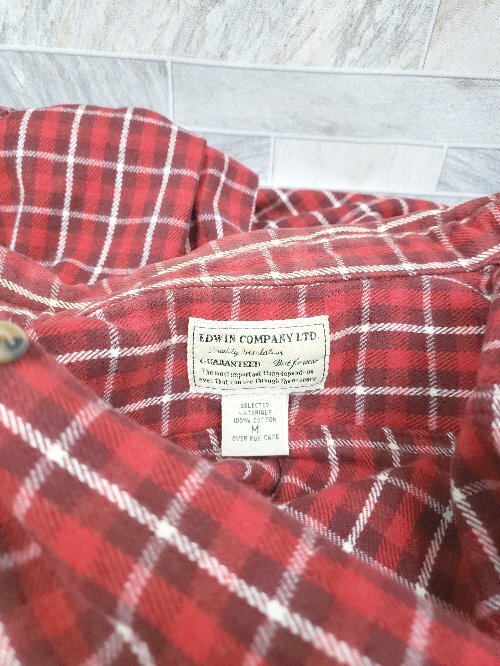 ◇ EDWIN エドウィン チェック柄 長袖 シャツ サイズM レッド マルチ メンズ P