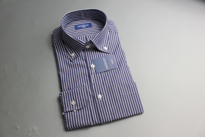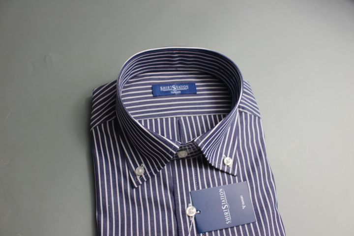 送料185円【新品】SHIRT STATION(山喜) BDワイシャツ /オックスフォード/綿100%/イージーケア M(39-82) 紺ストライプ012/UND109