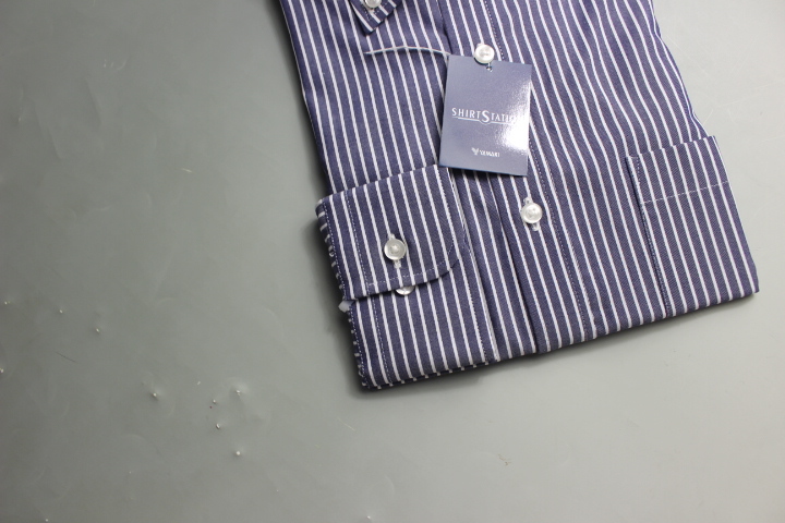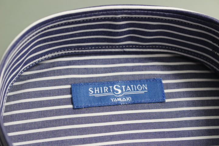 送料185円【新品】SHIRT STATION(山喜) BDワイシャツ /オックスフォード/綿100%/イージーケア M(39-82) 紺ストライプ012/UND109(7D207