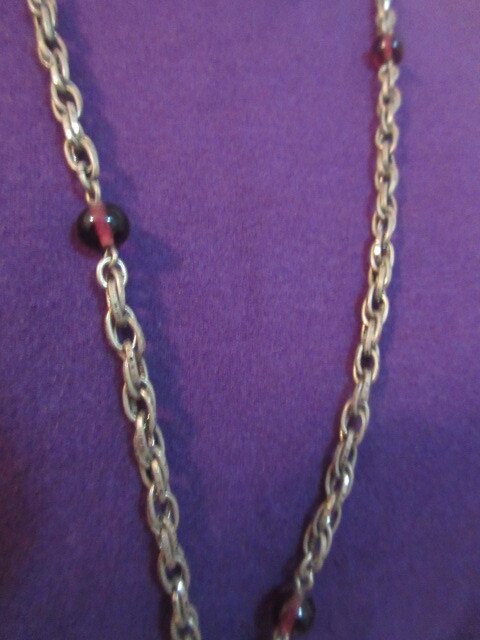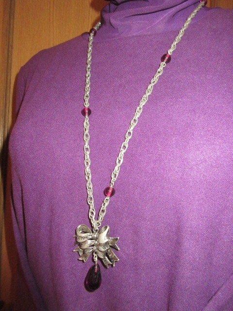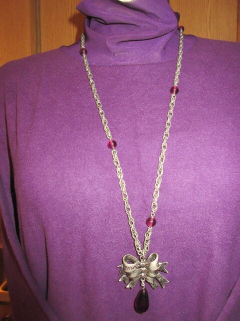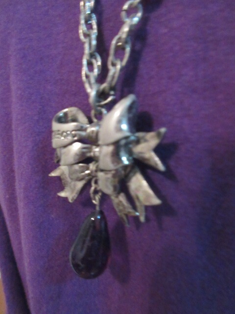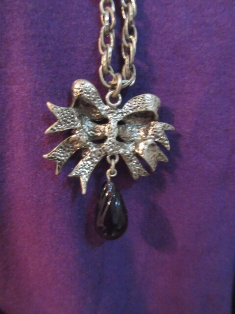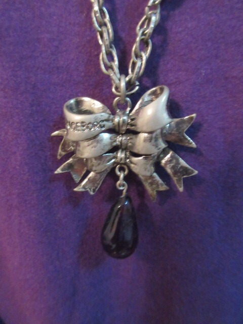 ■ブランド品■【インゲボルグ INGEBORG】約2万円■アンティーク仕上げ ロゴ入りリボン&和ガラスのロングチェーンネックレス■