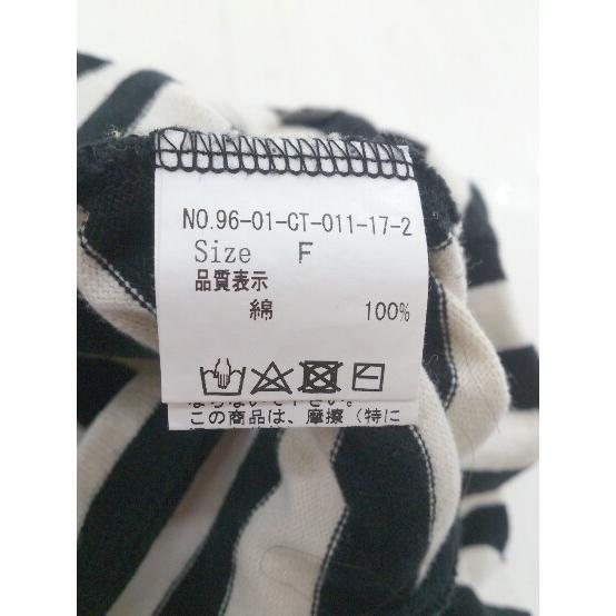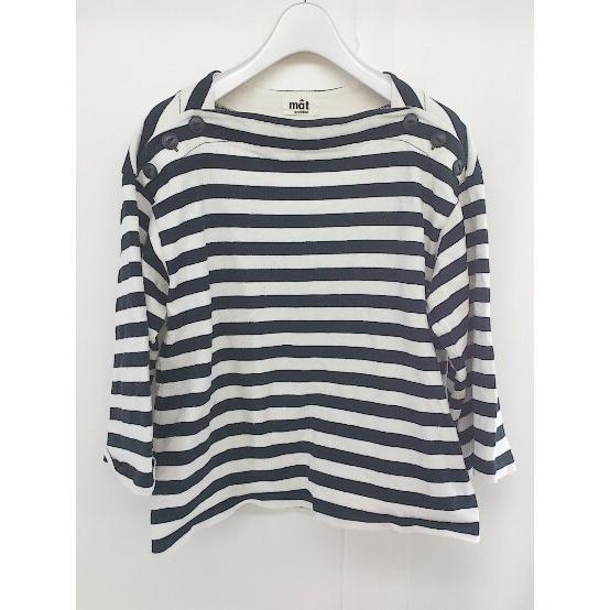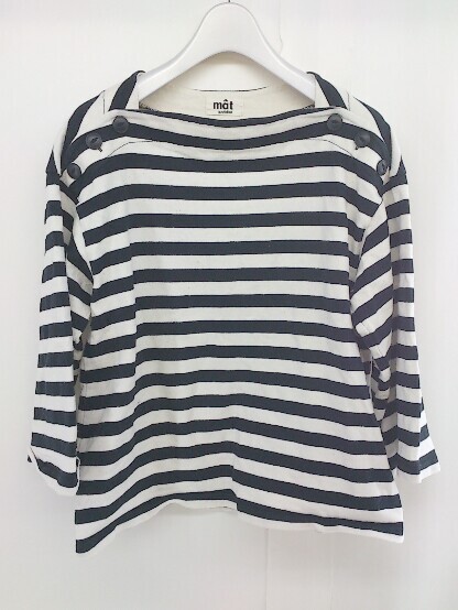 ◇ mat quotidien マトコテディアン ボーダー 七分袖 Tシャツ カットソー サイズF アイボリー ブラック レディース