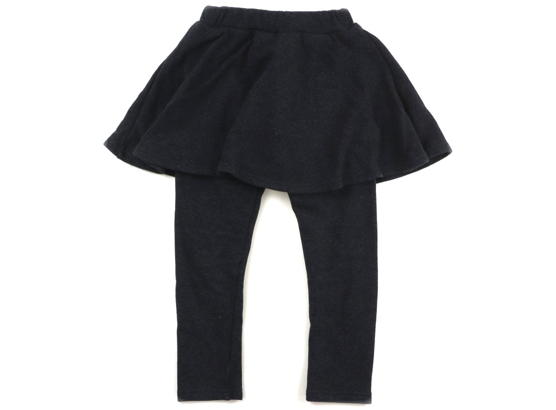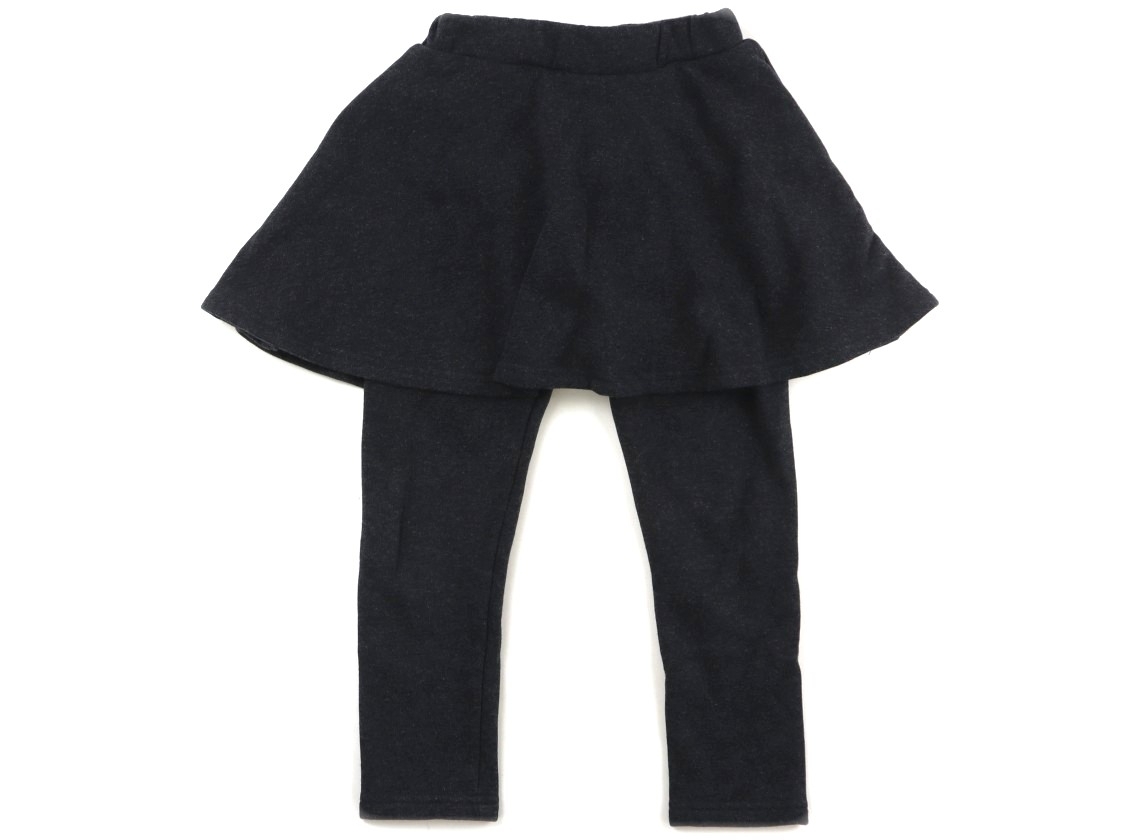 スパッツ一体型。ポリエステル、コットンのカットソー生地で裏フリース。スカートの内側に白い小さい汚れあり。若干の毛羽立ちがありますが、まだまだ普段着として活躍してくれそうです。