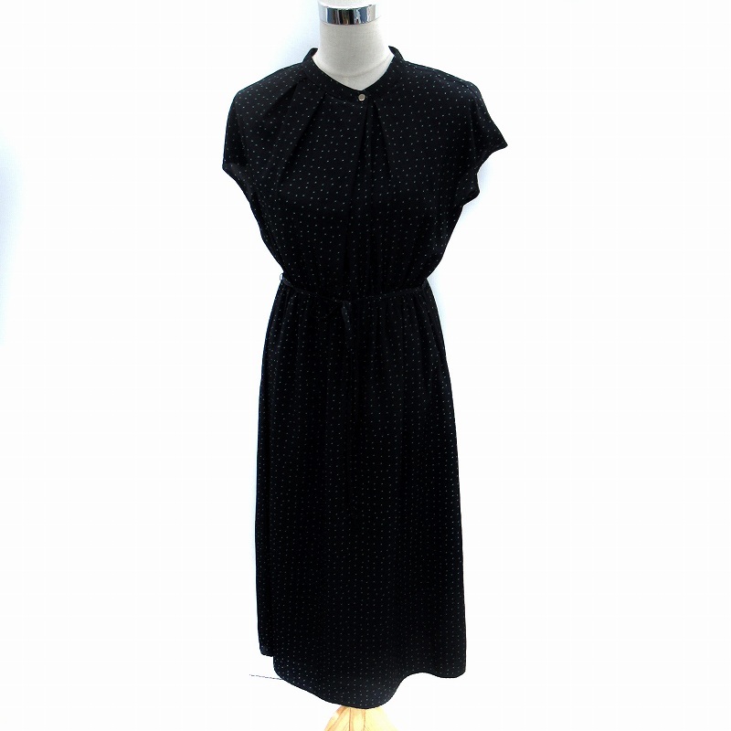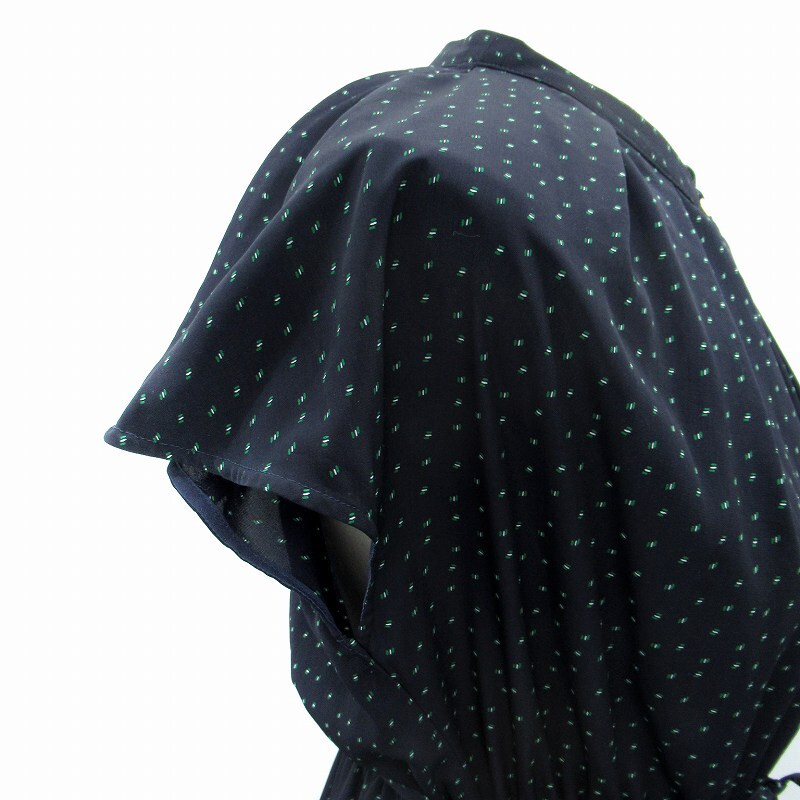 シップス SHIPS ソリッドフロントタックワンピース 半袖 マキシ丈 ロング丈 総柄 リボン ONE マルチカラー 紺 ネイビー 314-51-4070