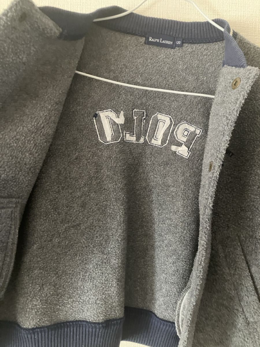 グレーのボタン付きジャケット、サイズ120、リブ編み袖口。