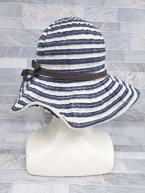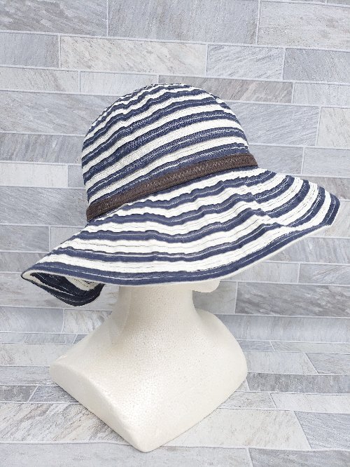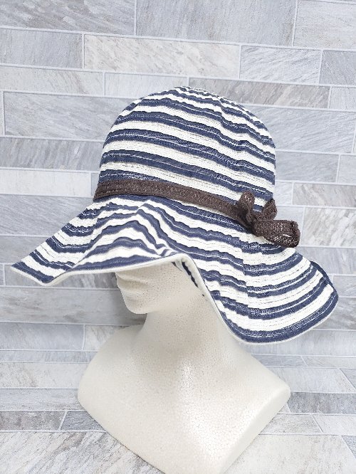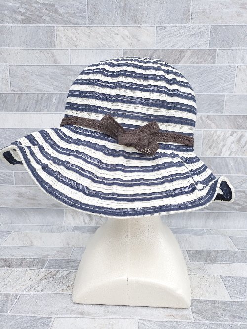 ◇ TOPKAPI トプカピ ボーダー リボン チューリップハット ブルー ホワイト サイズ57.5cm レディース P
