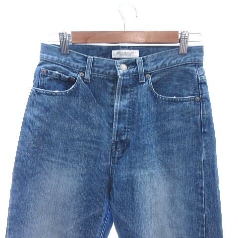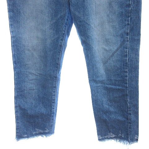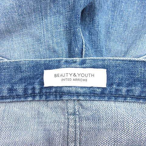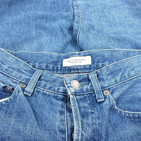 B&Y ユナイテッドアローズ BEAUTY&YOUTH デニムパンツ ジーンズ テーパード アンクル丈 ボタンフライ カットオフ ダメージ加工 S 青