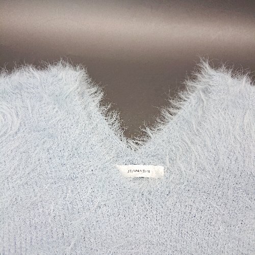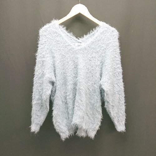◇ JEANASIS ジーナシス シャギー Vネック フワフワ モコモコ 大人っぽい 長袖 ニット サイズF ブルー レディース E