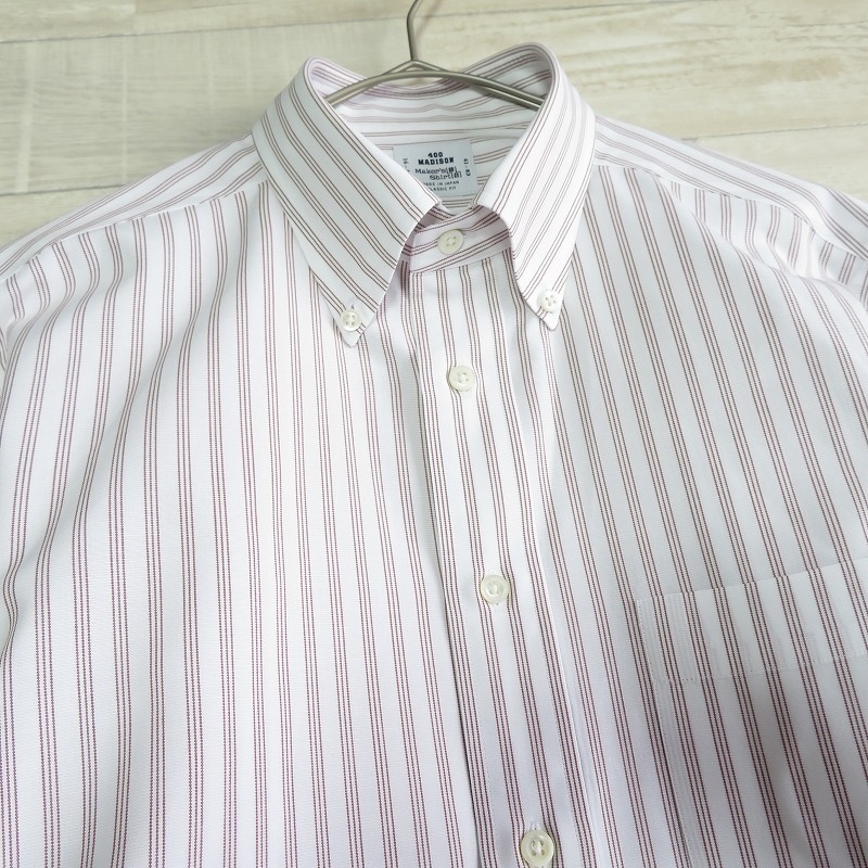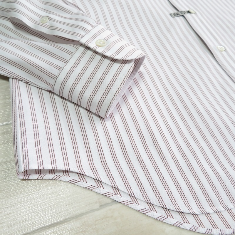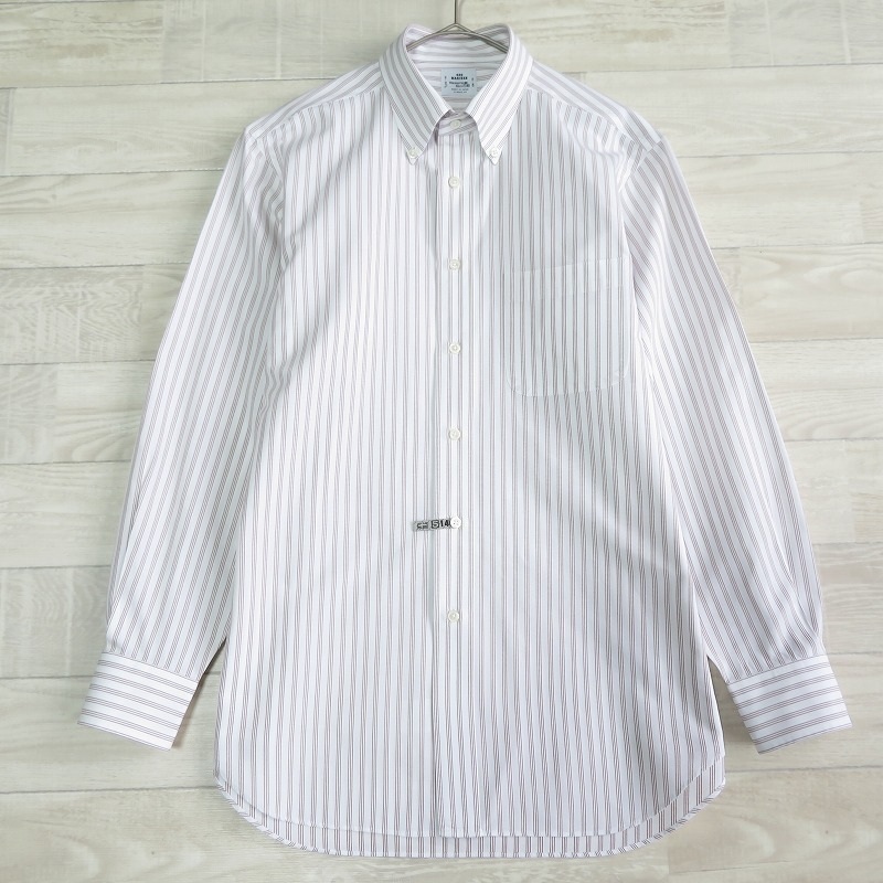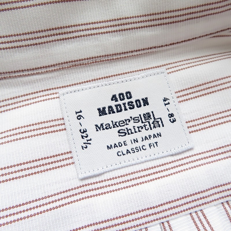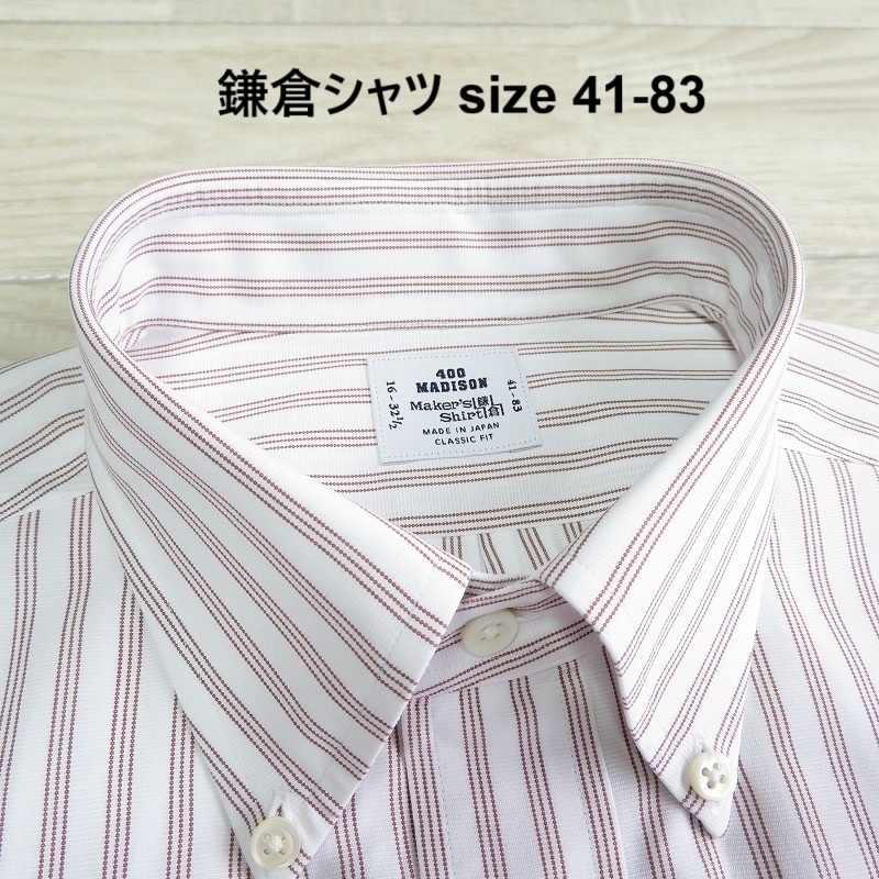 鎌倉シャツ size 41-83/日本製◆メンズワイシャツ*クラシックフィット*ボタンダウン*白×茶*トリプルストライプ*146