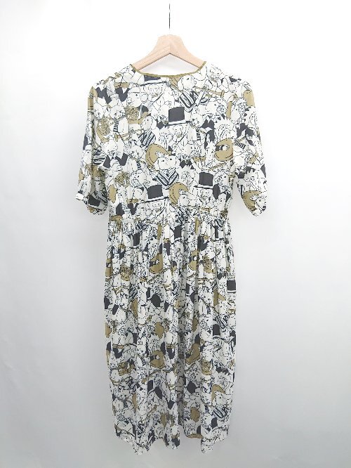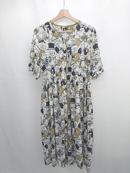 ◇ ⊂ MERLOTメルロー 総柄 アニマル 半袖 ロング ロング半袖ボタンワンピース サイズ ベージュ系 レディース E