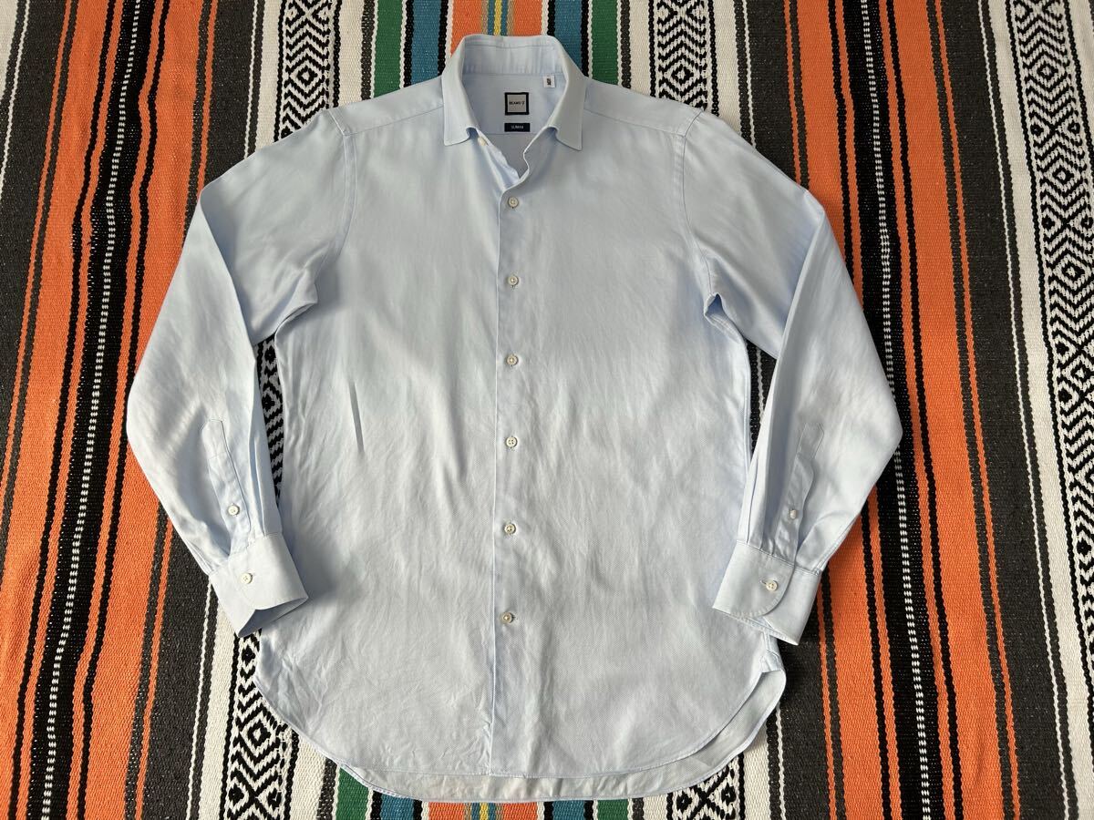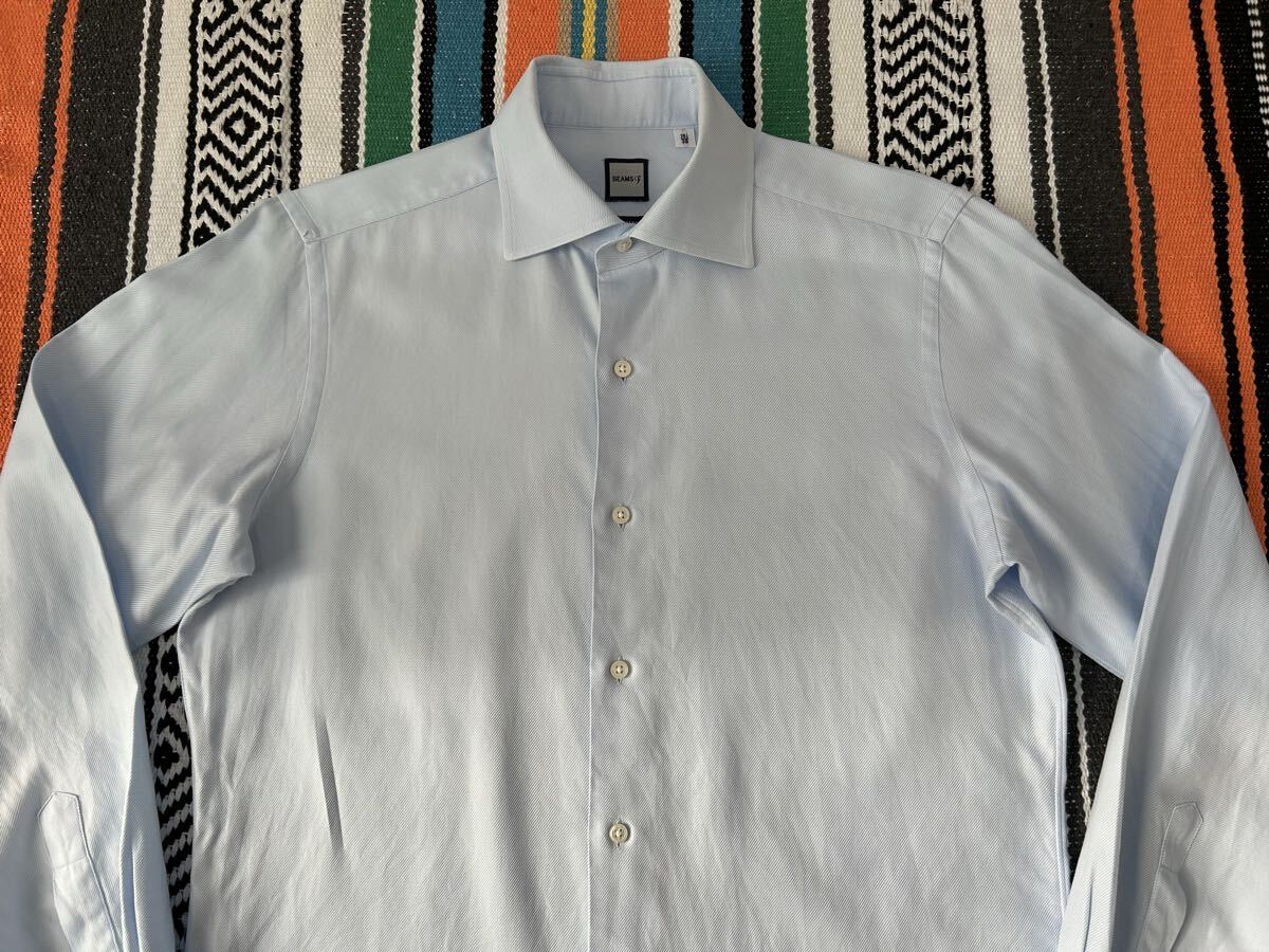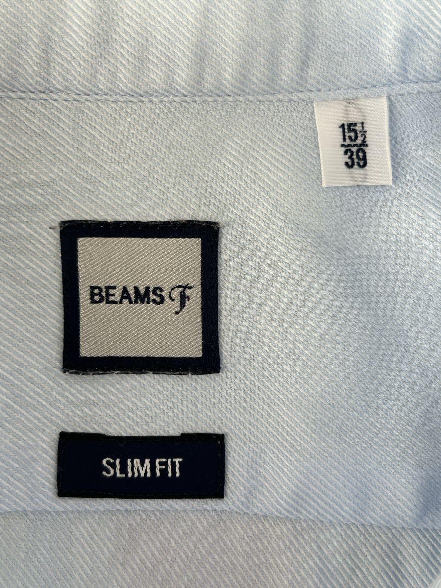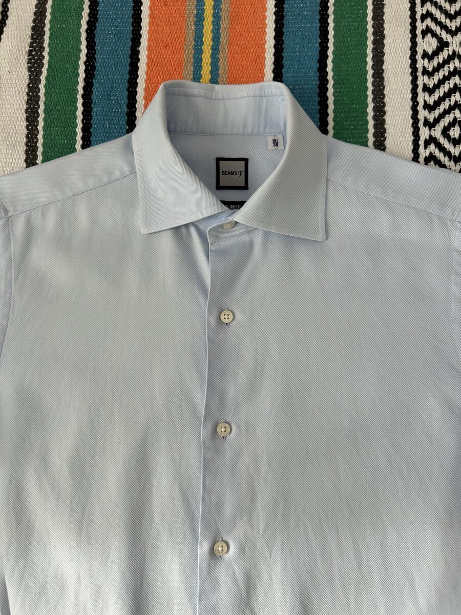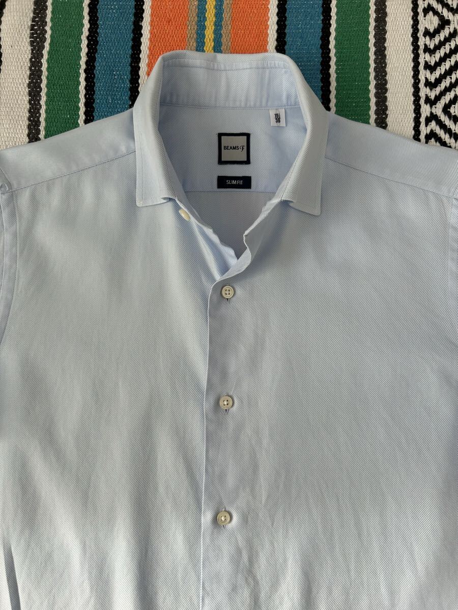 送料無料 ビームスF ドレスシャツ Mサイズ 15H 39 日本製 ブルー BEAMSF 長袖 ビジネスシャツ コットン 綿 ワイシャツ スリムフィット