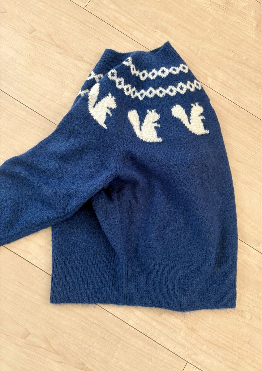 遊び心たっぷりのリスの模様がかわいらしく、コーデの主役になってくれますよ!