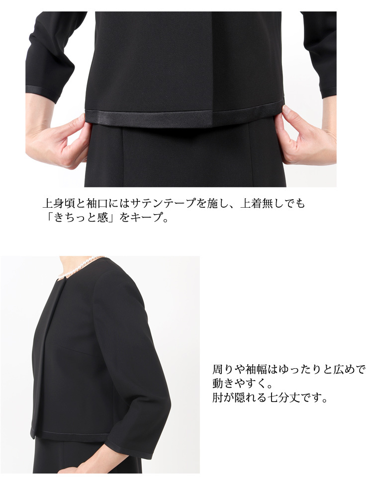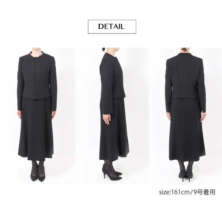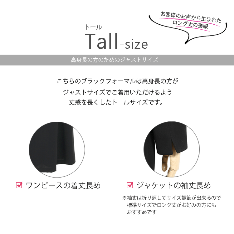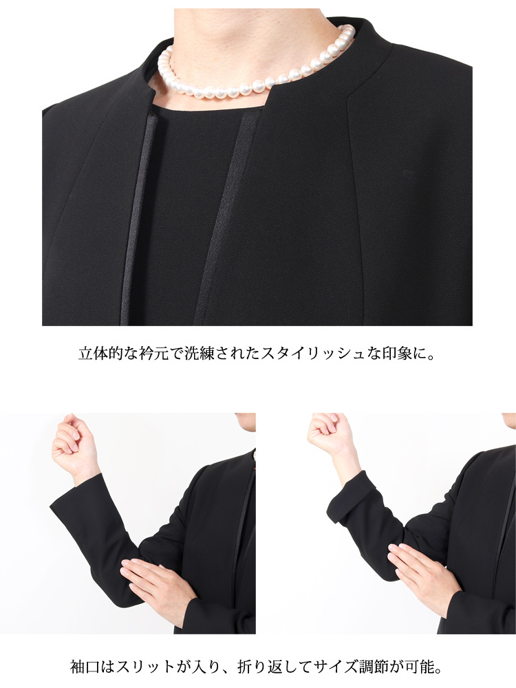 | 【トールサイズ】ブラックフォーマル13号サイズ 背の高い方にジャストサイズのロング丈のオールシーズン用ブラックフォーマルです。 喪服としてだけでなく、お手持ちのコサージュをつけて、お子様の卒園式や卒業式などのママスタイルとしてもおすすめです。 さらに、ご家庭で洗えるウォッシャブル素材を使用。 クリーニング不要で、いつでも清潔に保てます。 ■商品番号 113t585-au ■セット内容 ジャケット・ワンピース ■実寸サイズ ジャケット