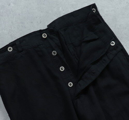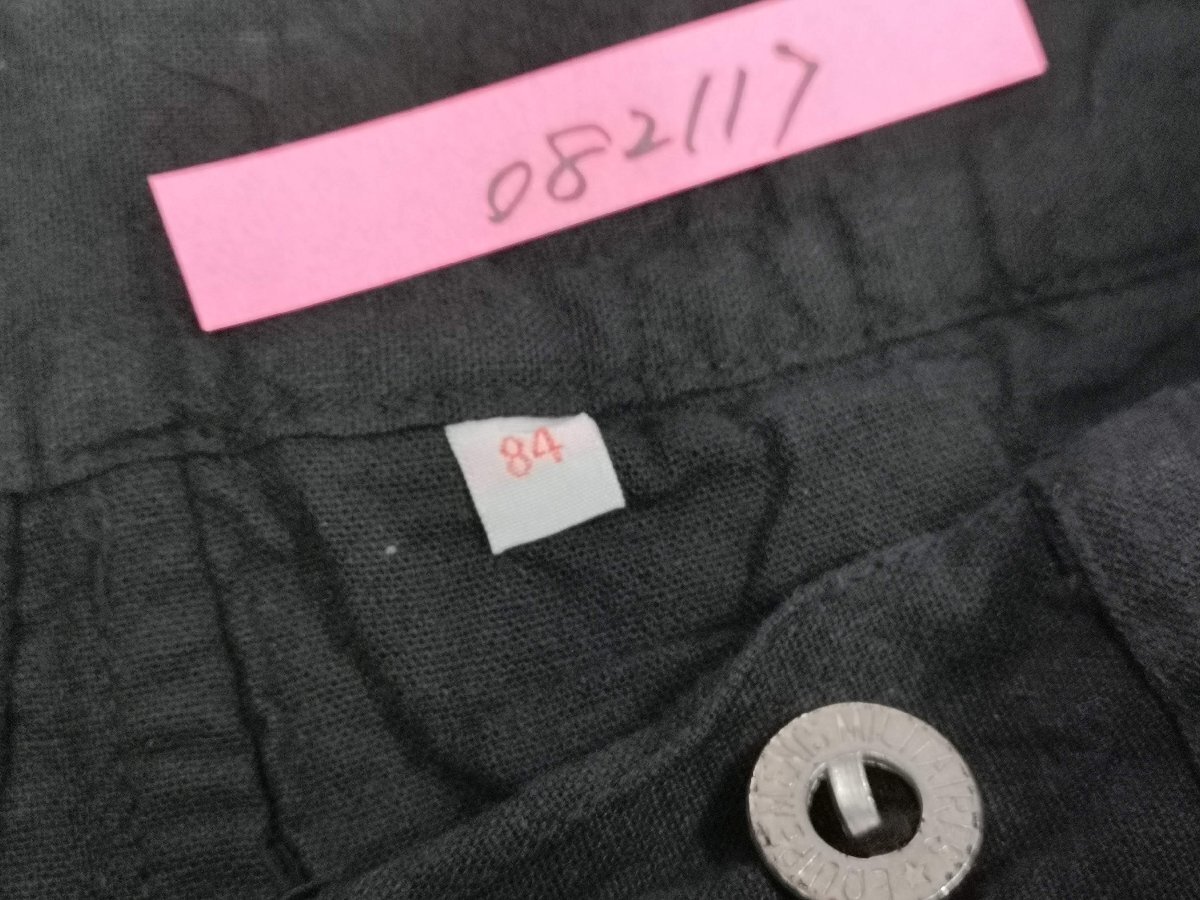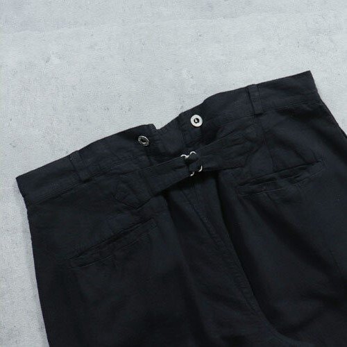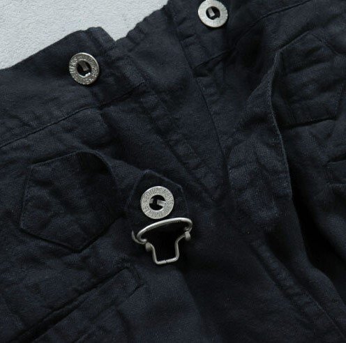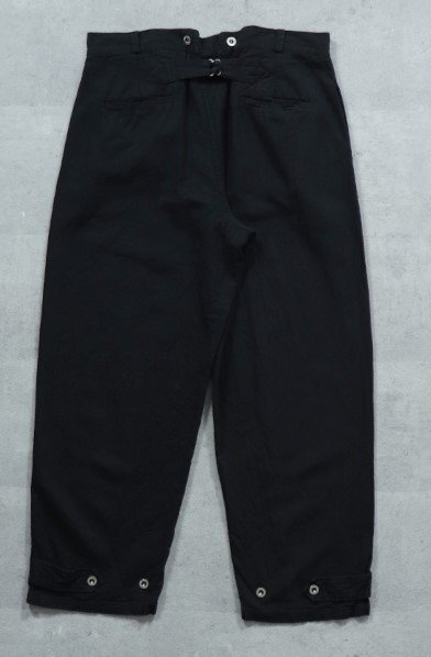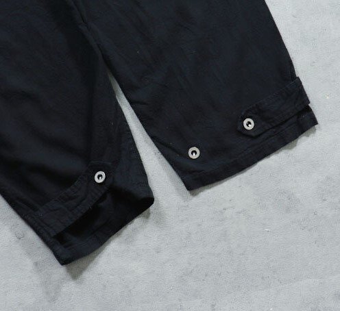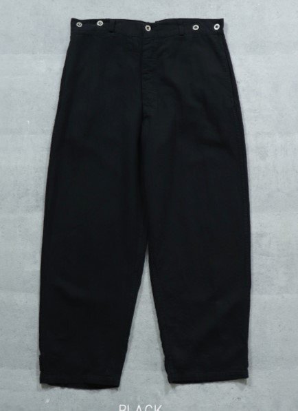 フランス軍でボージョンと呼ばれる被服は訓練・作業用に使用されていました。 イギリスやドイツのドリル、USのワーキング(デニム)に相当します。 ボージョンの原型は、1873年に採用された炊事兵用の作業着でした。 1882年からは訓練・作業着として全兵士に支給されました。 過酷な使用環境に耐えるため、頑丈な無漂白のリネン生地が採用され刻印入りの合金ボタンを使用しました。 全体的にゆったりとしたシルエットでシンチバックでフィット感を調整できました。1912年には 歩兵にも支給されるようになりました。 その後改良が続けられましたがこのモデルは1940年代のものをモチーフにしています。 ●素材: リネン55% コットン45% BK後染め加工です、洗濯にご注意ください。 サイズ84Mは全長104cm、股下74cm、ウエスト86cm程度です。 ※ワンウォッシュ、タンブラー乾燥をしております。生地の特性上、ウエストサイズに若干のバラつきがございます、ご了承ください。 沖縄離島を除く全国元払い500円でお送りいたします。落札価格にプラスでお願いします。