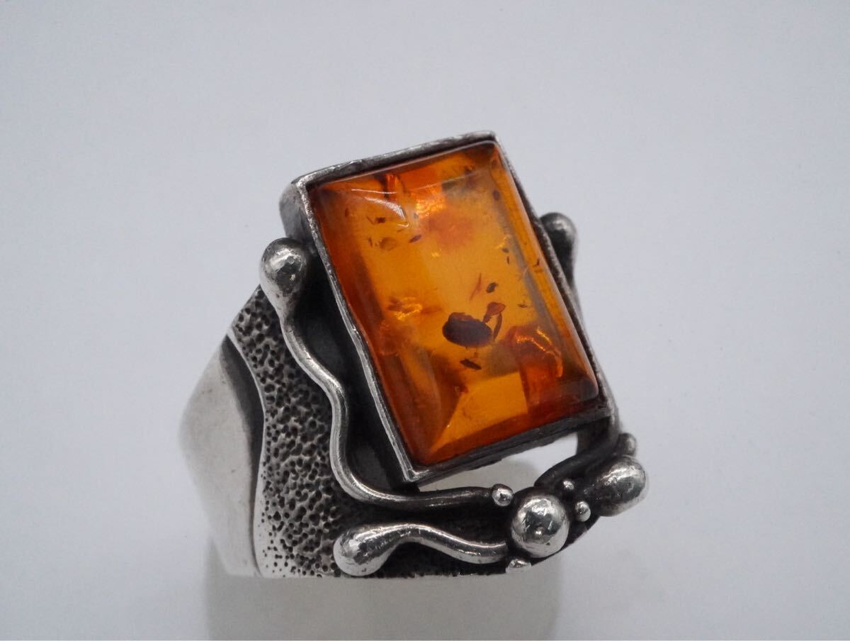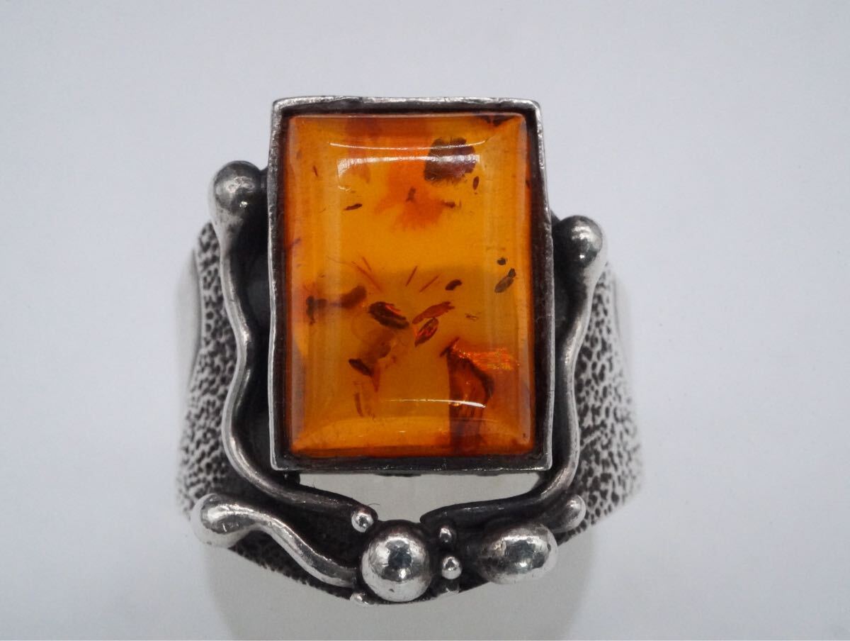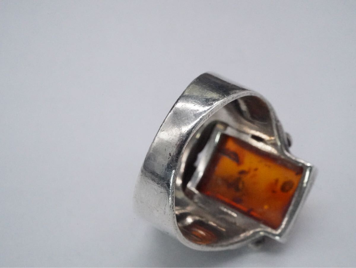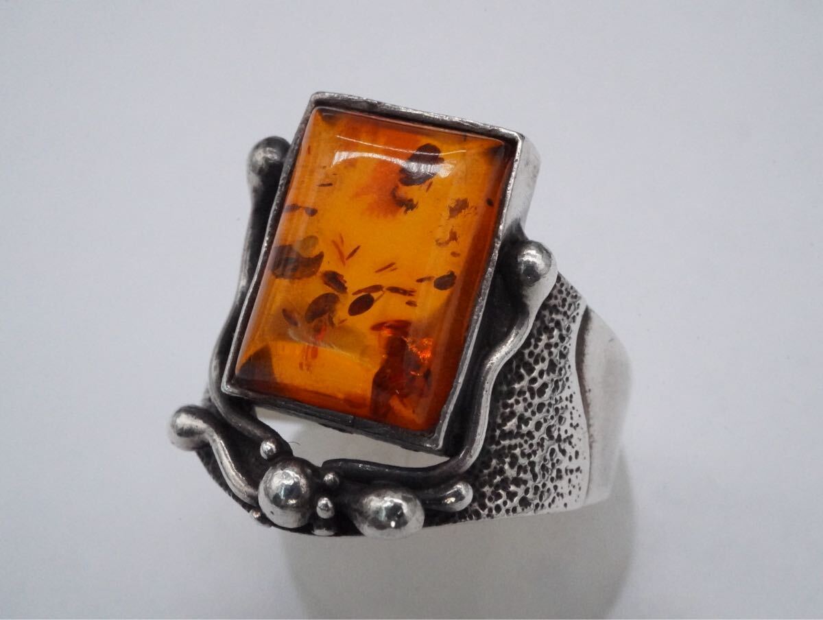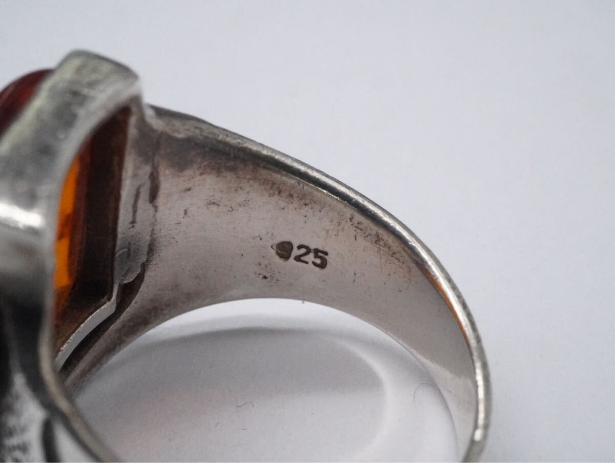 【157】19号 琥珀 こはく アンバー SILVER シルバー 925 指輪 リング アクセサリー TIA