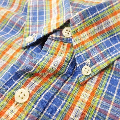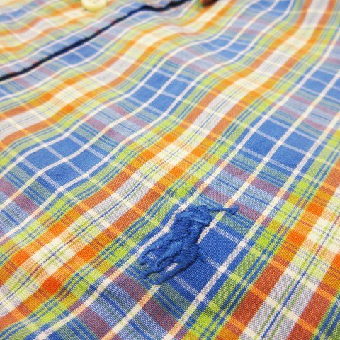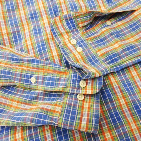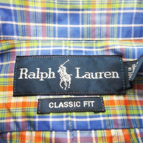 ラルフローレン RALPH LAUREN ボタンダウンシャツ 長袖 バックタック ポニーロゴ刺繍 チェック 14.5 32/33 S 青 ブルー /MN20