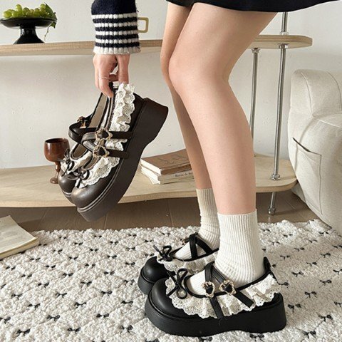 ・ガーリーな印象のストラップパンプス。