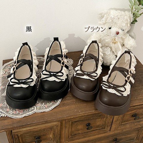 ・ころんと丸いつま先と華奢なリボンがフェミニンな足元を演出。