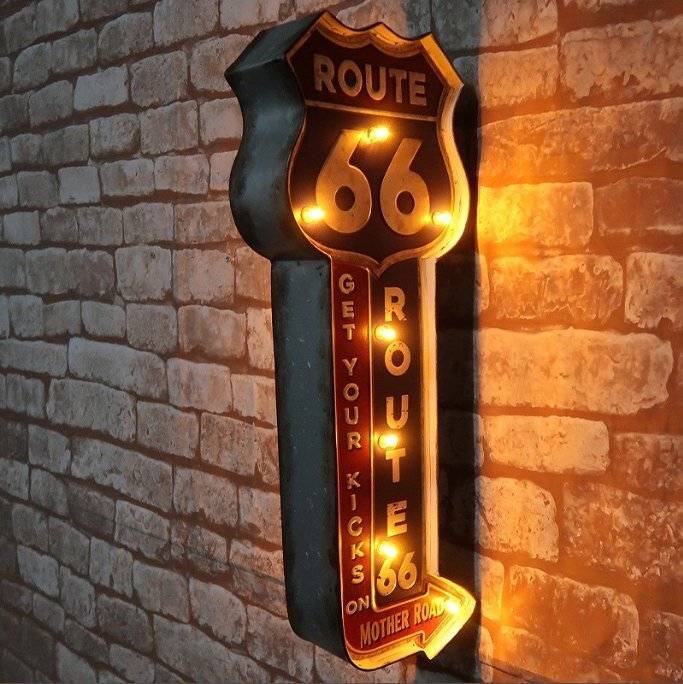 アメリカン雑貨 立体看板 ウォールサイン ブリキ風 アメリカンレトロ アメリカ雑貨 電球付 インテリア ルート66 ROUTE66 BR-37