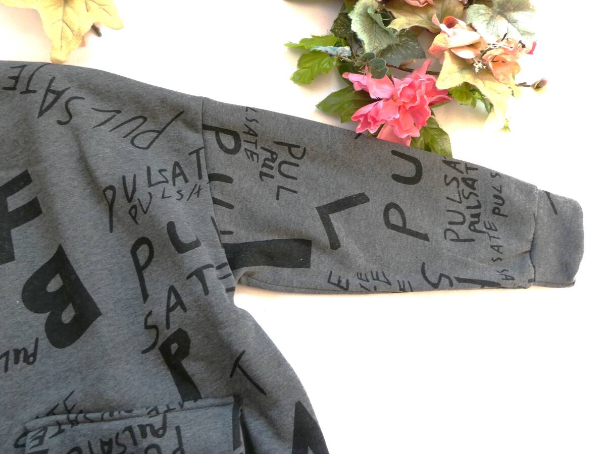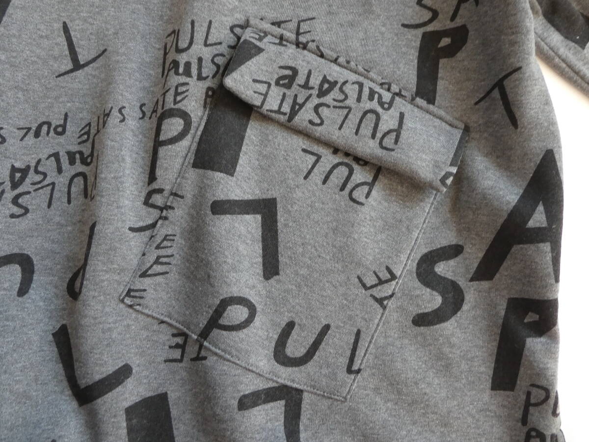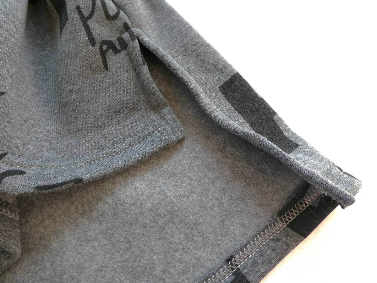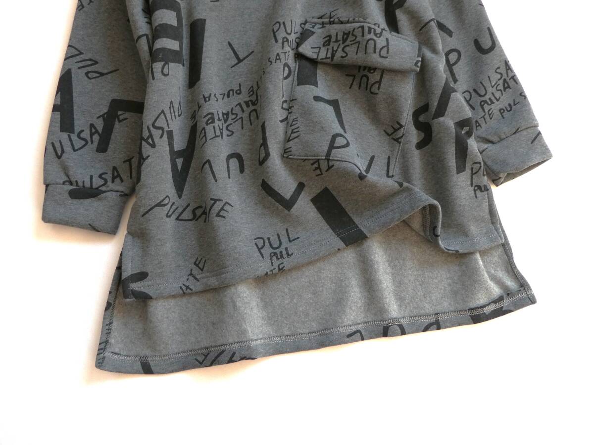 ゆったりサイズ【新品】裏起毛ニットソー素材♪英字アートプリント◇タートルネック☆ポケット付きチュニック・グレー×黒◆fit1027◆