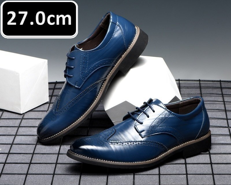 メンズ ビジネス レザー シューズ ブルー サイズ 27.0cm 革靴 靴 カジュアル 屈曲性 通勤 軽量 柔らかい 新品 【230】