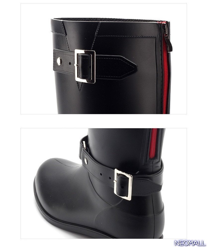 雨対策に☆ ロングレインブーツ【488】 24.0cm ブラック×レッド ジッパー付きで履きやすい!防水 レインシューズ レディース 長靴