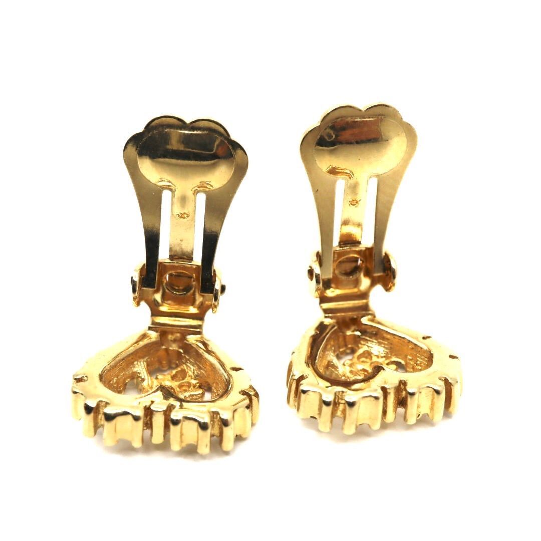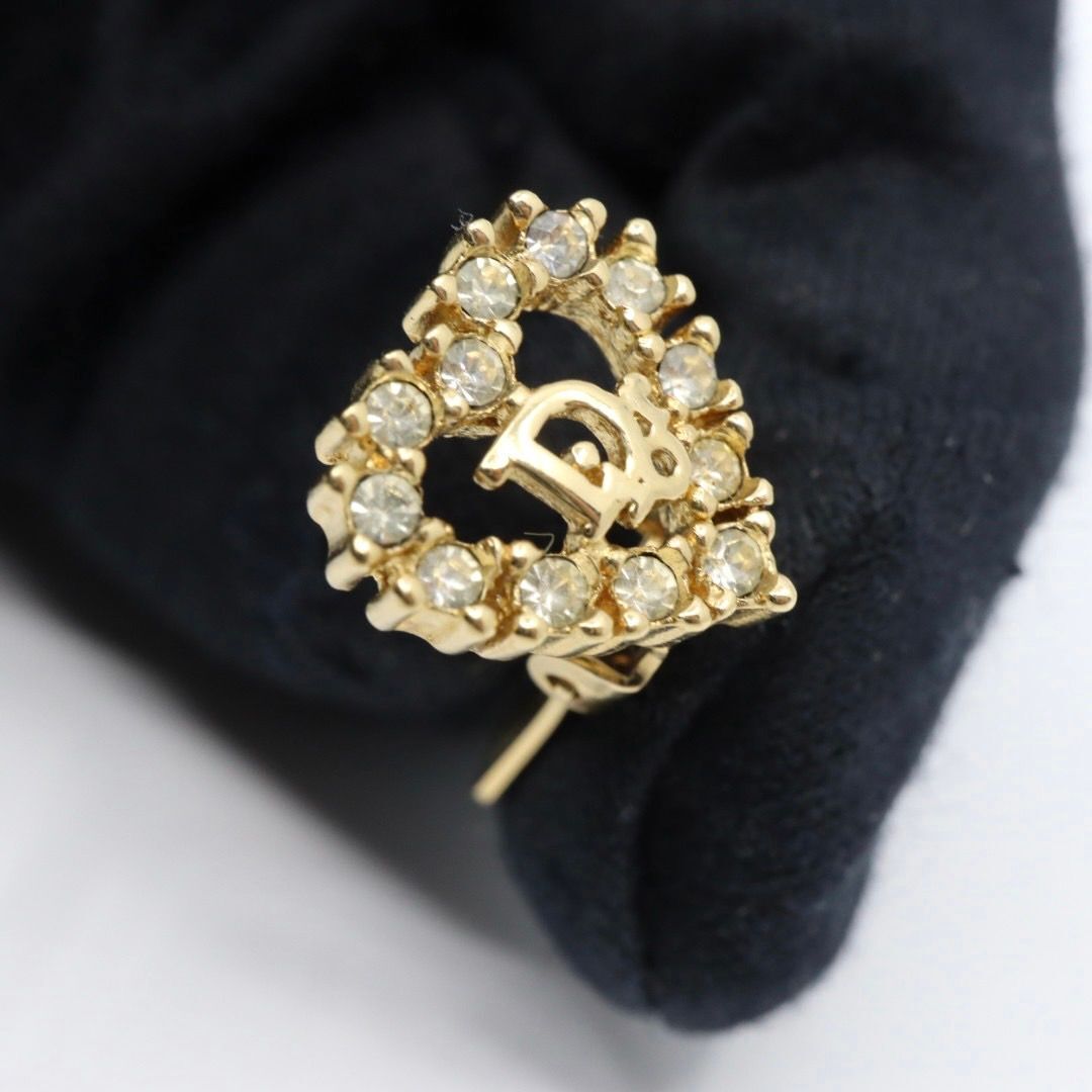 ★美品★ Dior ヴィンテージ イヤリング ハート Dロゴ ラインストーン GP ゴールド アクセサリー モチーフ Dロゴ ラインストーン 金色