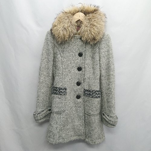 ◇ ⊇ AIC. エーアイシー ウール系 長袖 ファーコート サイズM グレー系 レディース E