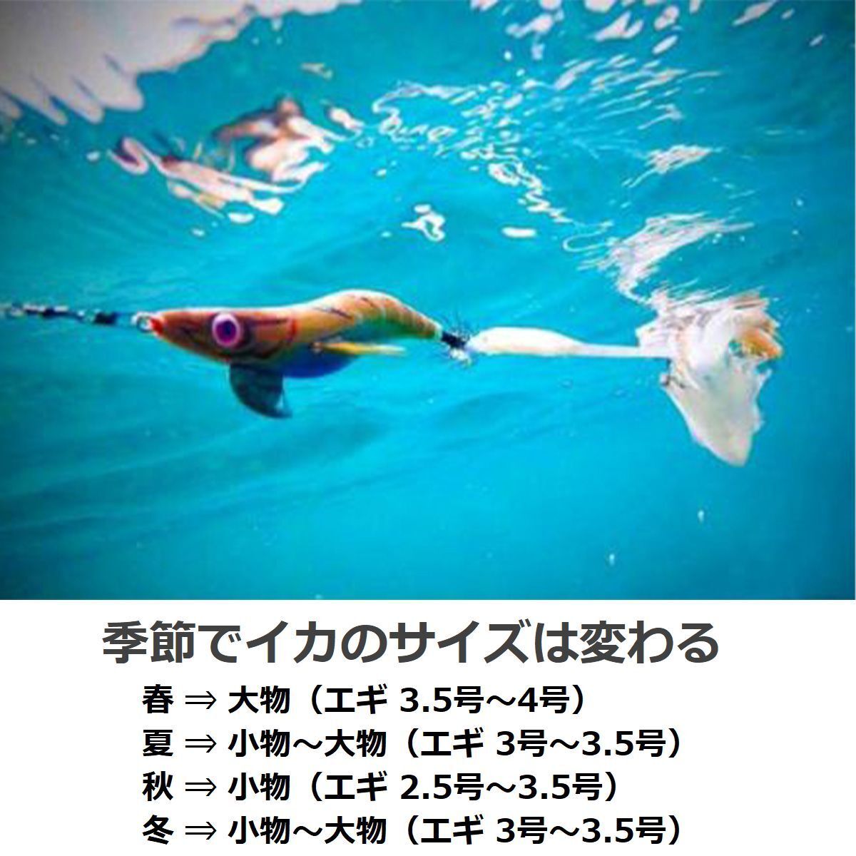 多彩なカラーバリエーションで、日中でも夜間でもイカ釣りをお楽しみ頂けます。