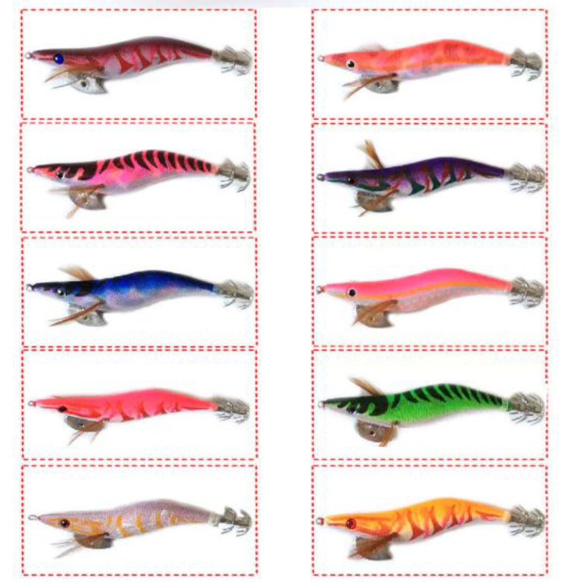 【エギ10色セット】10本エギ セット+エギング ケース、カラビナフック付き。