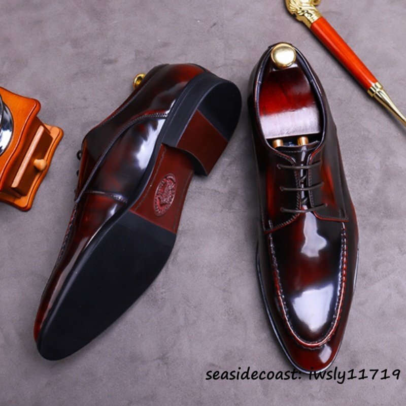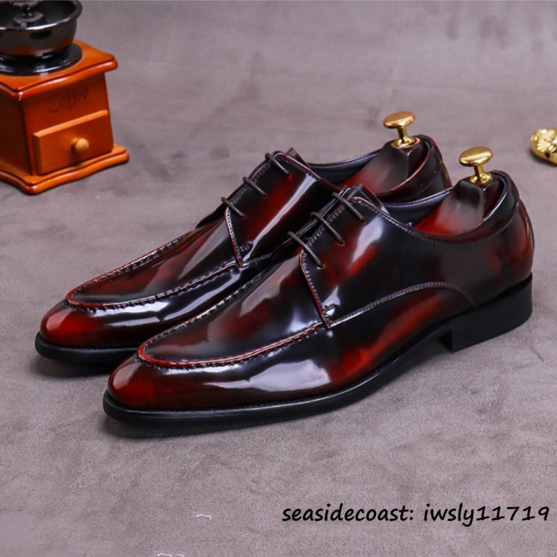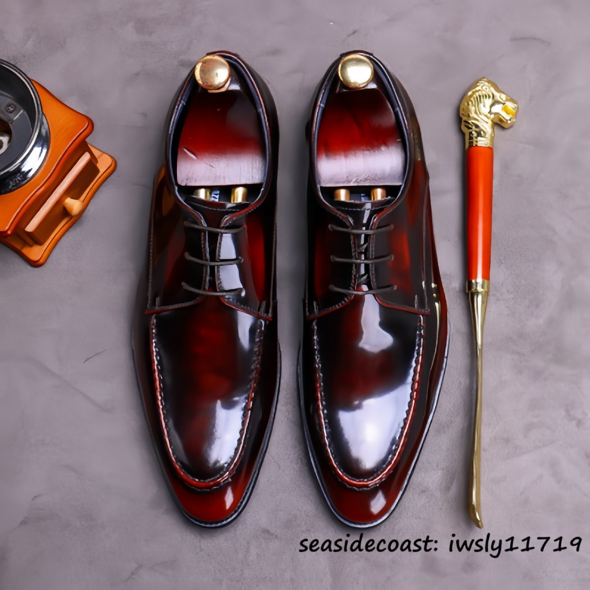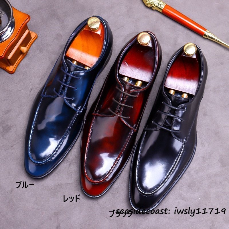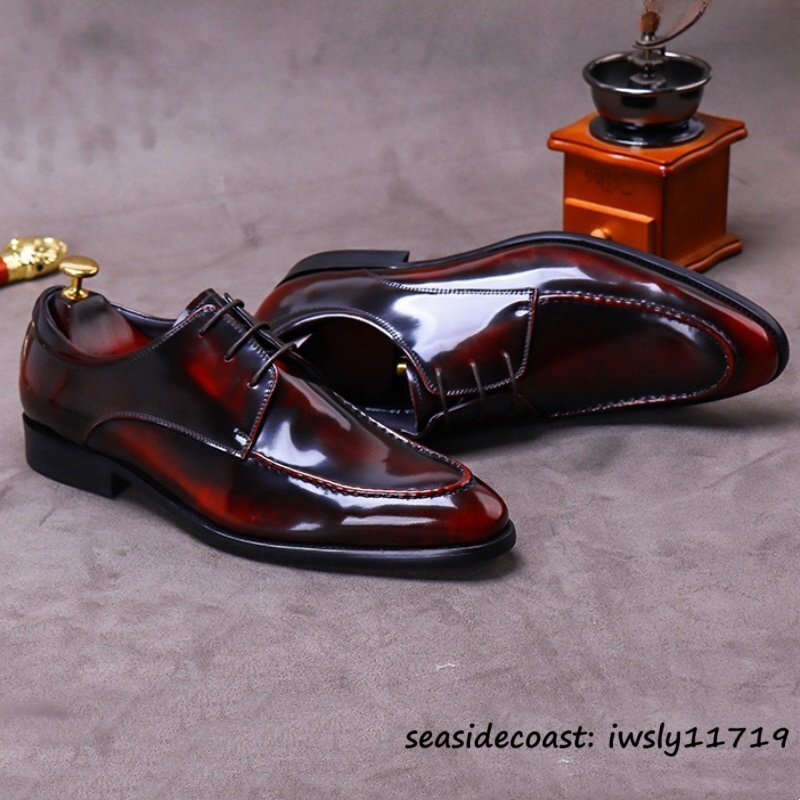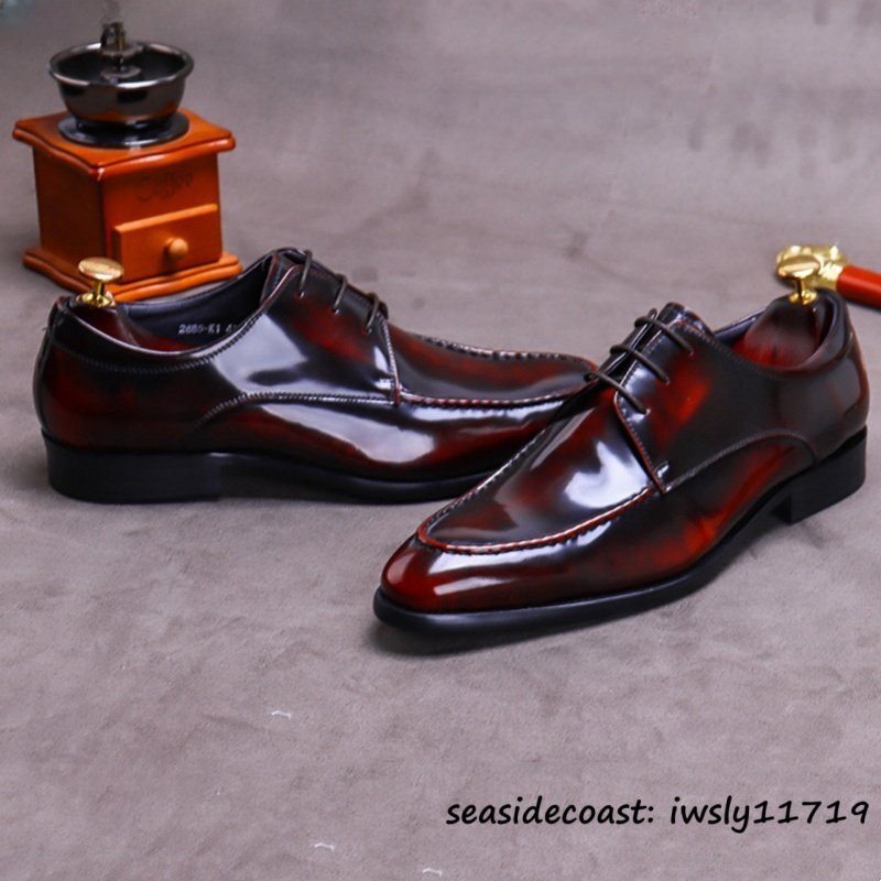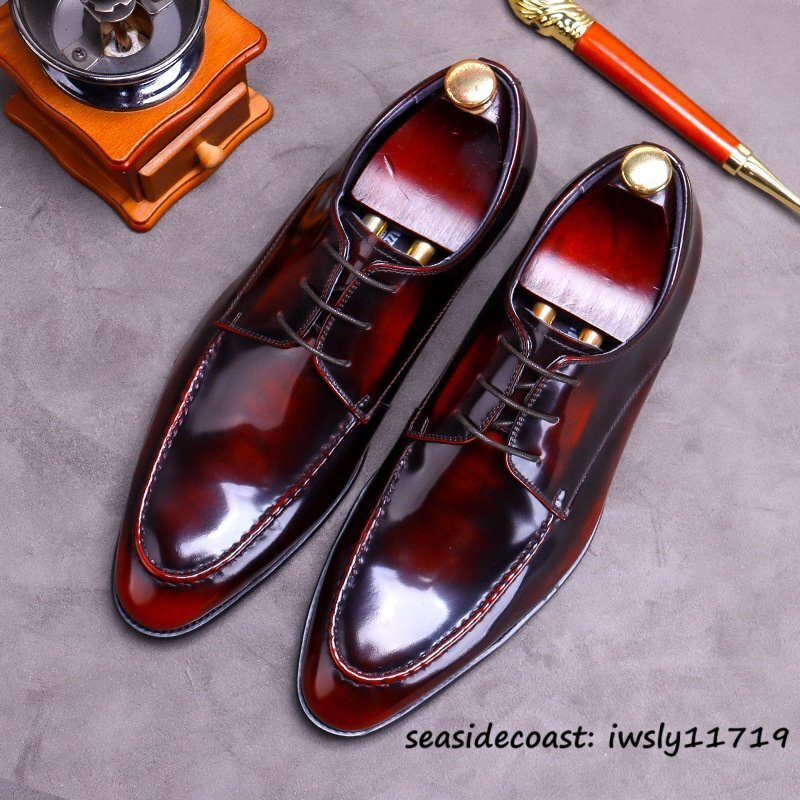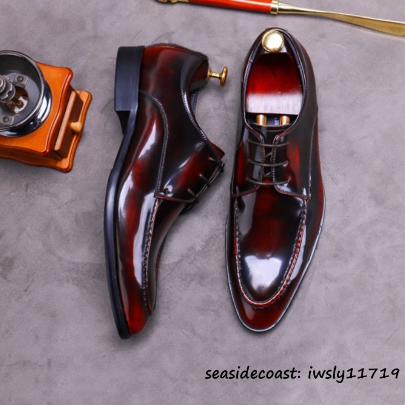 最高級★定価9万 ビジネスシューズ メンズ 本革 レザーシューズ 上質牛革 フォーマル 紳士靴 ヴィンテージ職人手作り 革靴 レッド 27.5cm