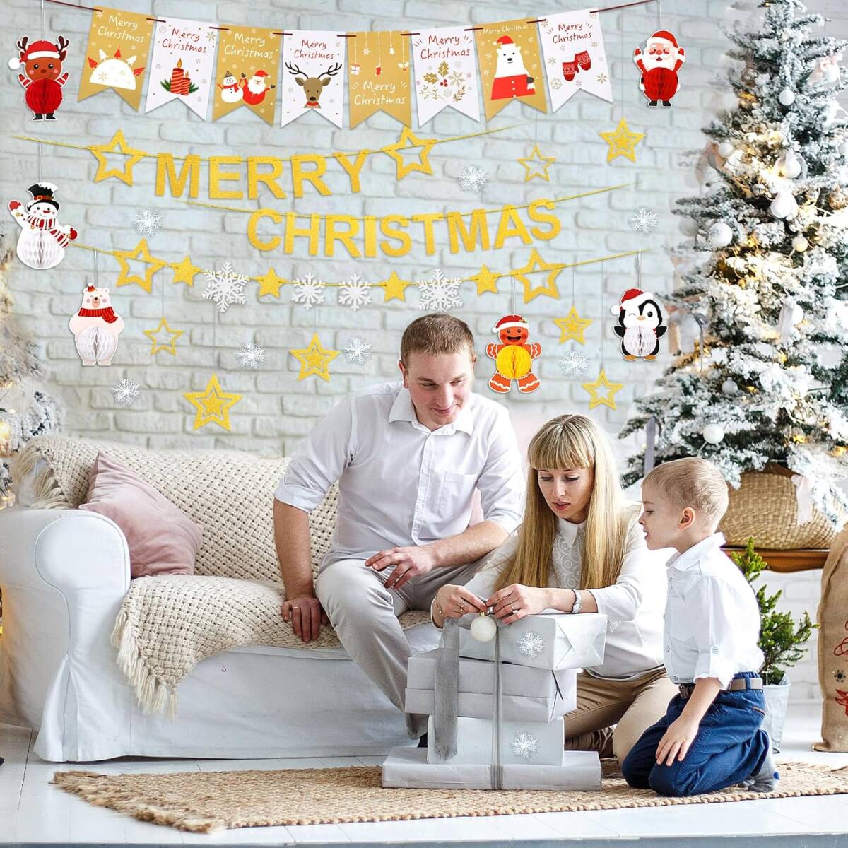 クリスマス 飾り 40点セット クリスマス ガーランド クリスマス飾り ハニカムボール 吊り下げ クリスマス 飾り付け サンタ
