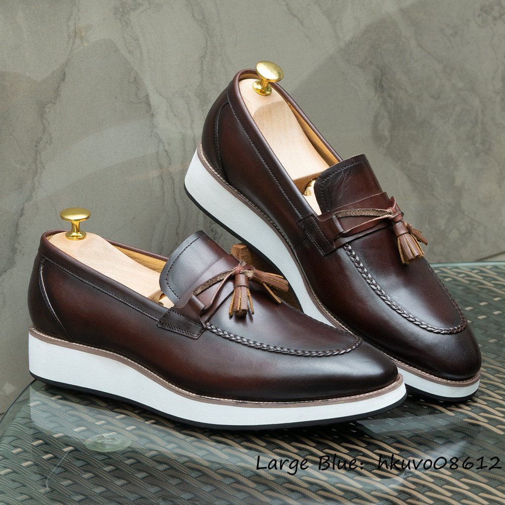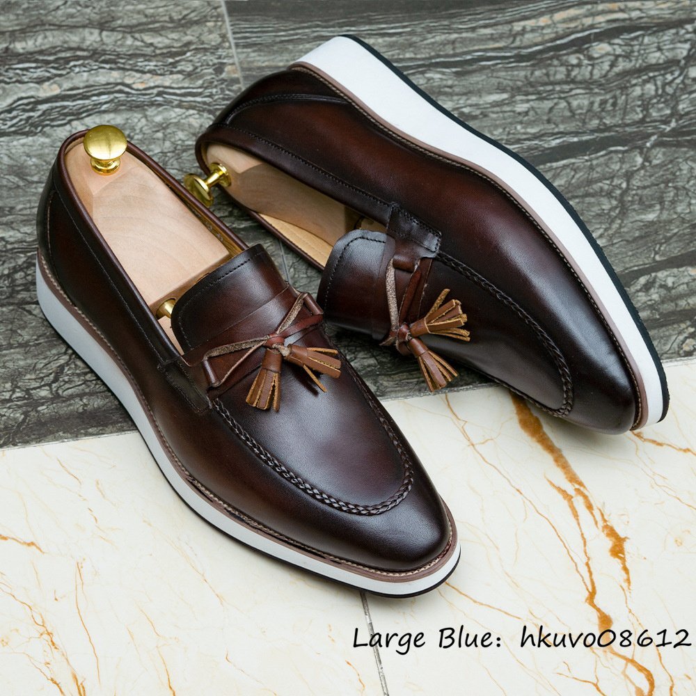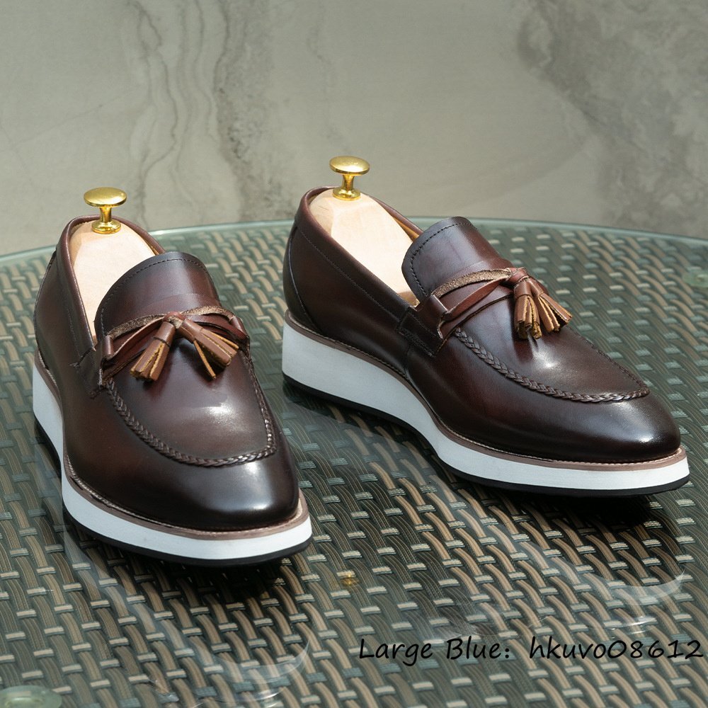 定価10万■最高級 スリッポン ローファー メンズ 職人手作り ビジネスシューズ 本革 レザーシューズ スニーカー 紳士靴 革靴 珈琲色 24.5cm