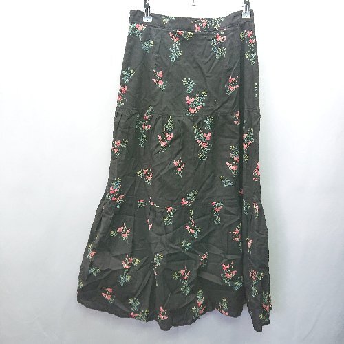 ◇ SLOBE IENA スローブ イエナ 花柄 サイドジップ ロング丈 フレア スカート サイズ38 ブラック レッド レディース E