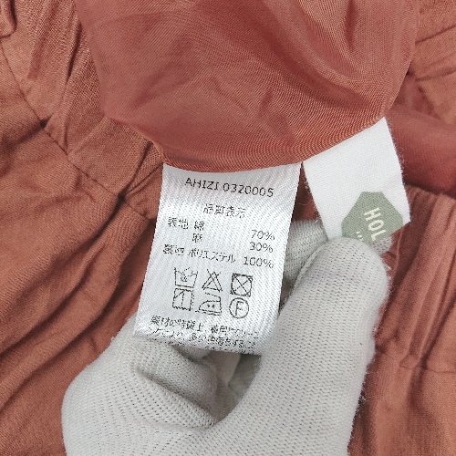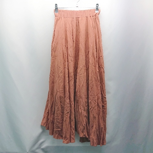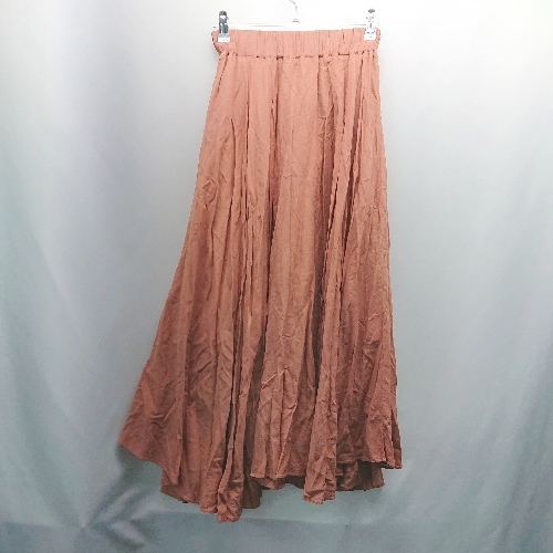 ◇ HOLIDAY ウエストゴム リネン 麻 カジュアル シンプル ロング丈 フレア スカート 表記なし オレンジ レディース E