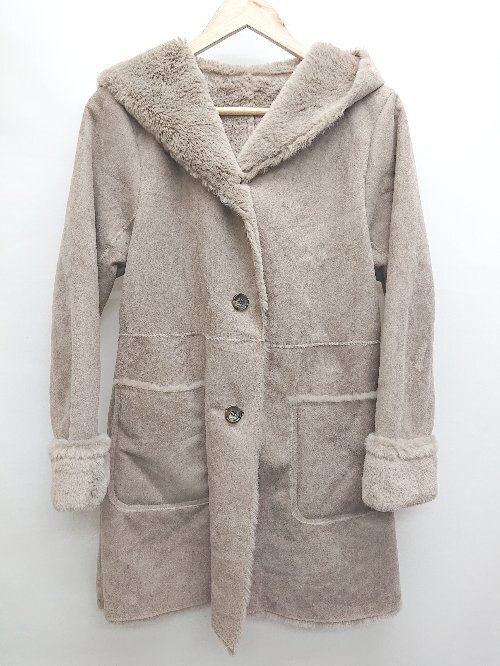 ◇ INGNI イング スウェード調 フェイクファー 長袖 コート ジャケット サイズM ベージュ レディース P