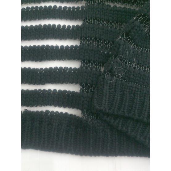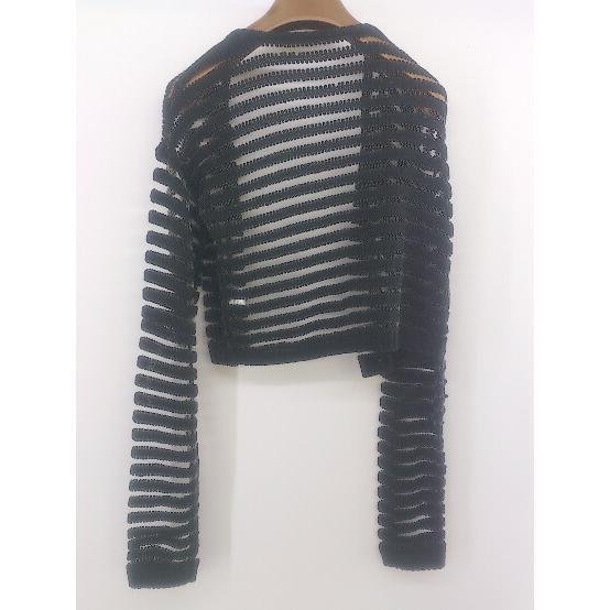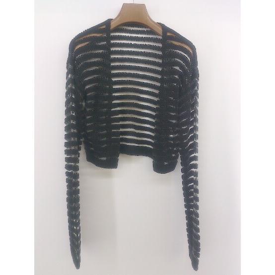 ◇ EGOIST エゴイスト 透かしボーダー 長袖 ニット カーディガン ブラック レディース P