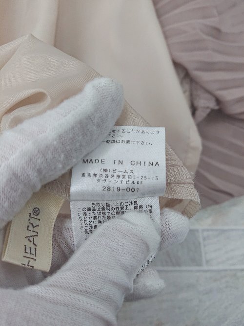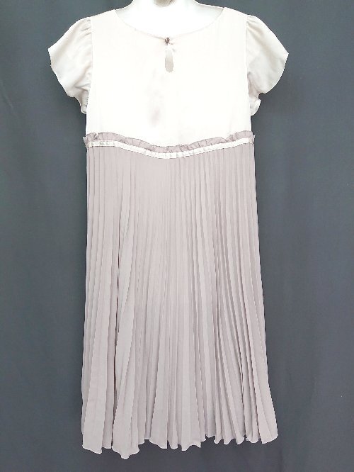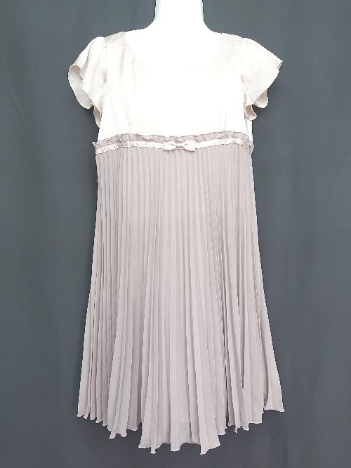 ◇ BEAMS HEART ビームスハート 切替 プリーツ 半袖 ミニ丈 ワンピース 表記なし ベージュ グレージュ系 レディース P