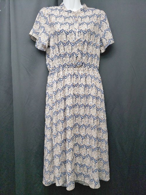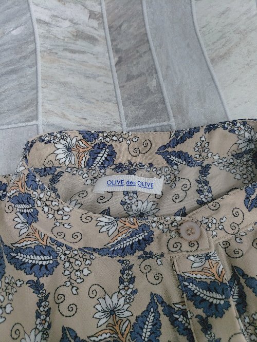 ◇ OLIVE des OLIVE オリーブ デ オリーブ 総柄 半袖 膝下丈 ワンピース サイズM ベージュ マルチ レディース P