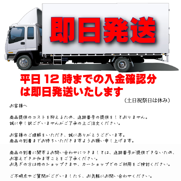 | 発送 | ![]() 発送のタイミングは、平日正午が締め切りです 土日祝日は休みとなります。(主にカレンダー通りです) ※問い合わせNo,はコスト削減の為、お知らせしていません。手間を省きできる限り価格を抑えてご提供していますのでご理解のほどお願いします。運送会社は随時一番安い方法で発送しますのでご指定できません |