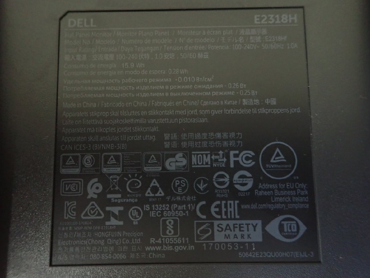 【4台セット】DELL E2318H 23型 モニター 1920x1080 フルHD DisplayPort VGA スタンド付 液晶ディスプレイ 動作確認済 事務用 (@1550)