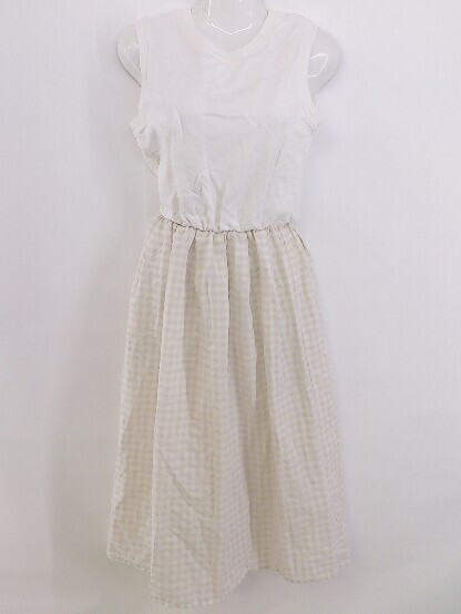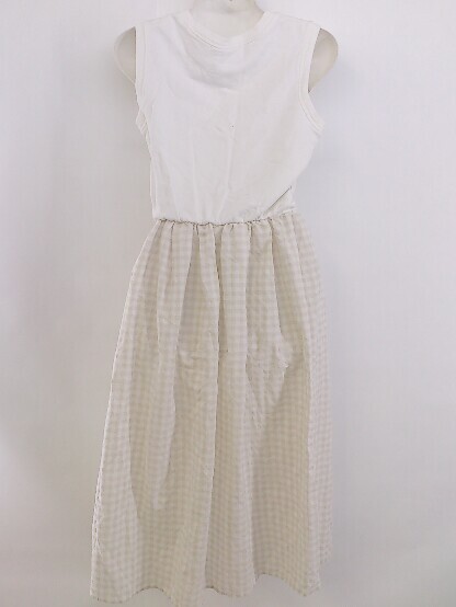 ◇ ◎ KBF アーバンリサーチ チェック 切替 ノースリーブ ロング ワンピース サイズF ホワイト ベージュ レディース P
