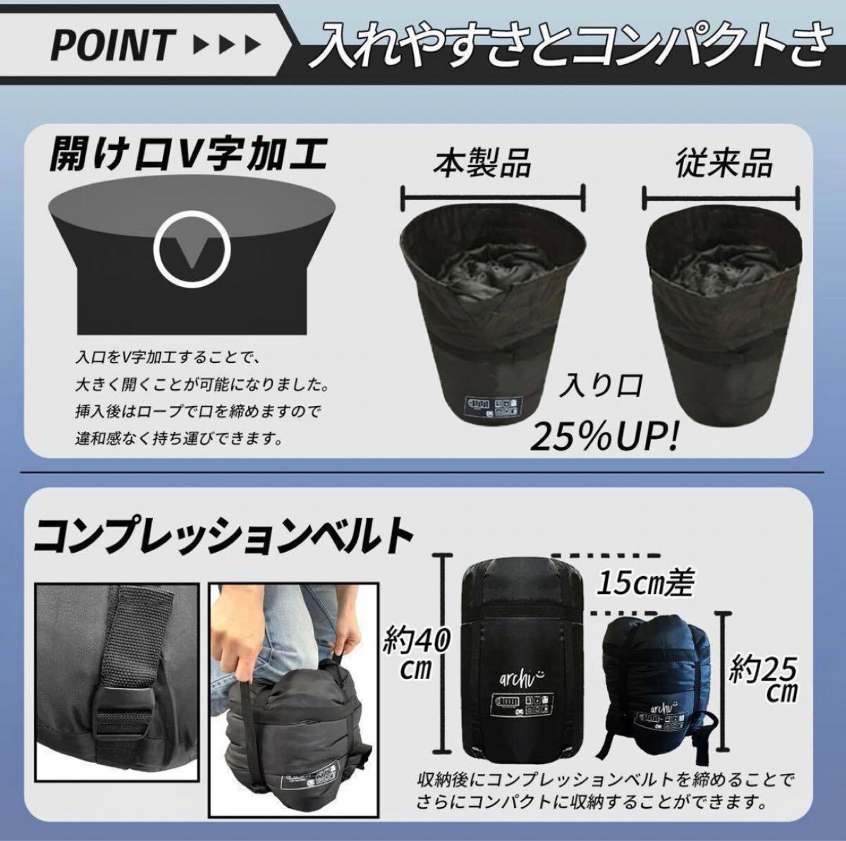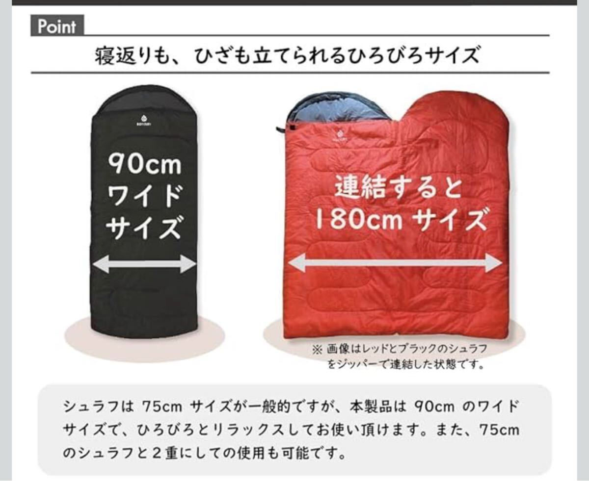 寝袋 シュラフ ワイドサイズ 人工ダウン 封筒型 -15℃ オールシーズン 冬用 コンパクト