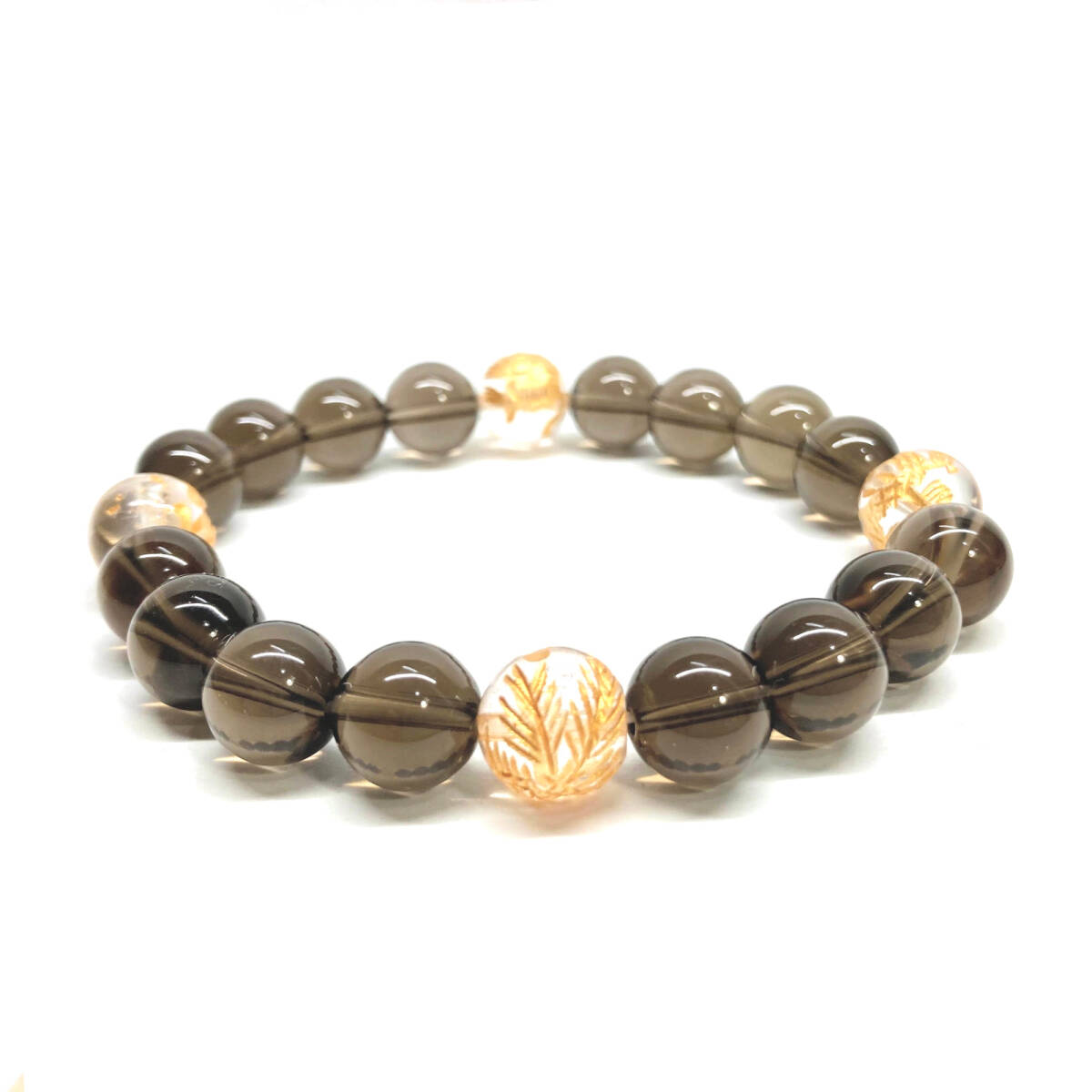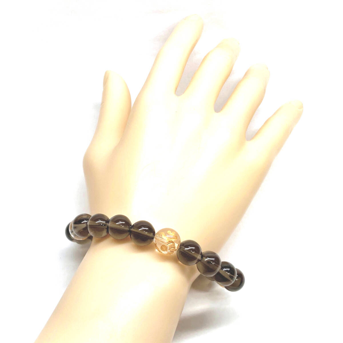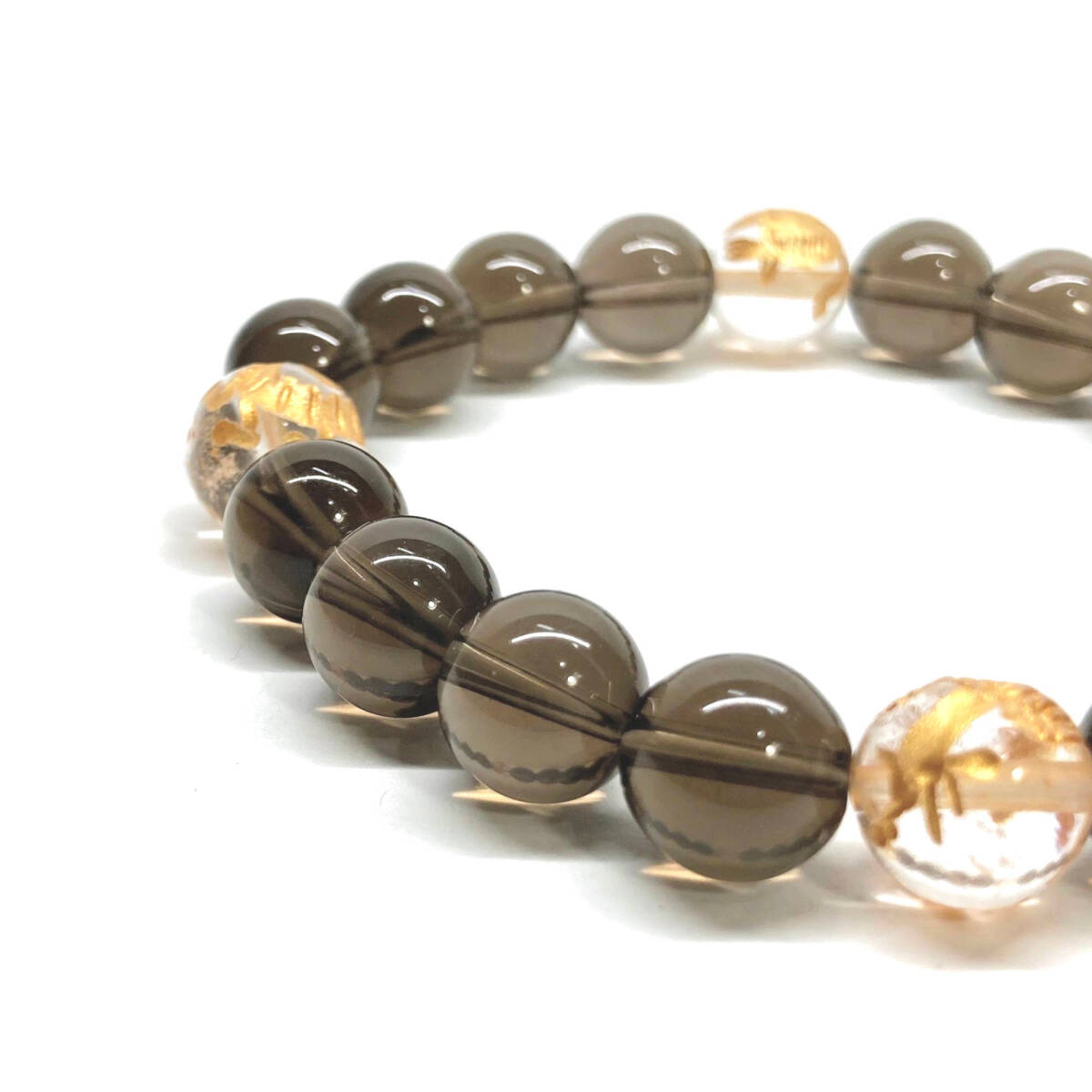 10mm 四神獣金彫水晶×スモーキークォーツ パワーストーン ブレスレット天然石 運気上昇 開運 金運 恋愛運 青龍 白虎 玄武 朱雀 ☆
