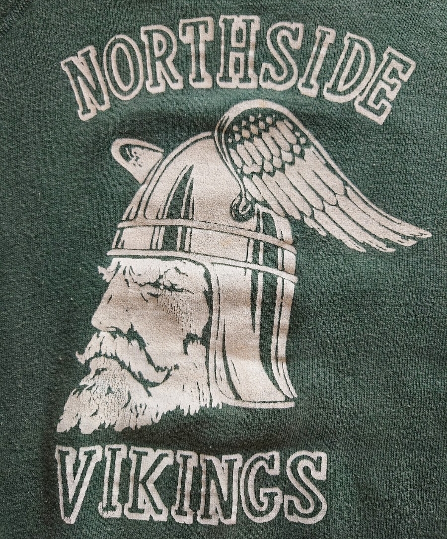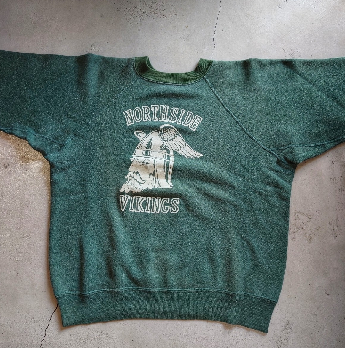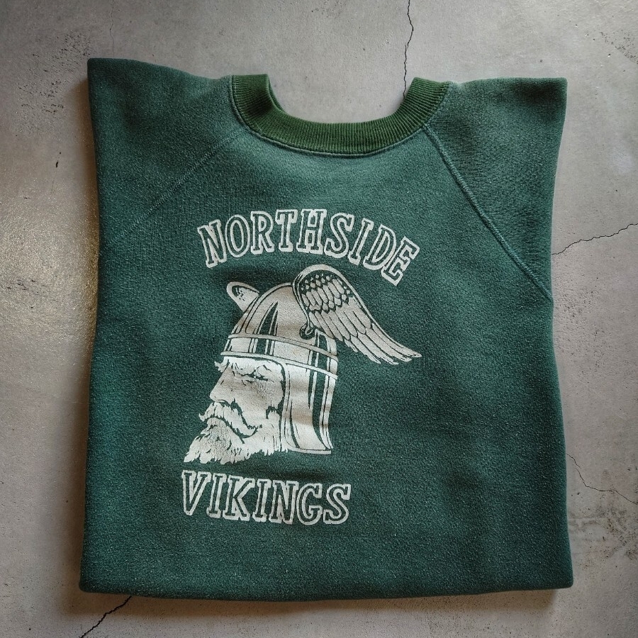 退色したボディとバイキングプリントの雰囲気がとても合っています。
