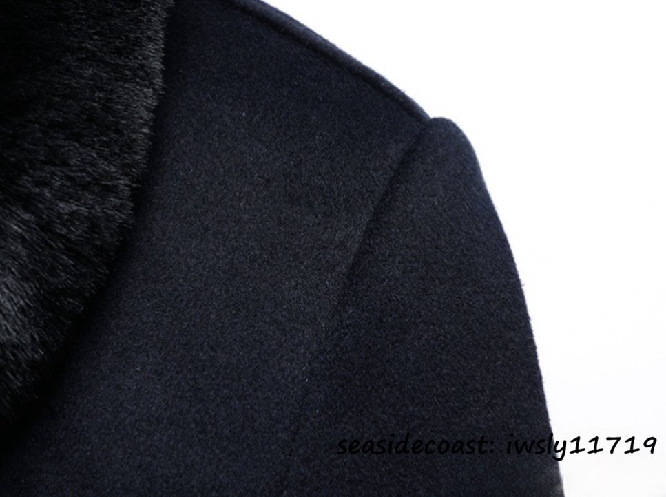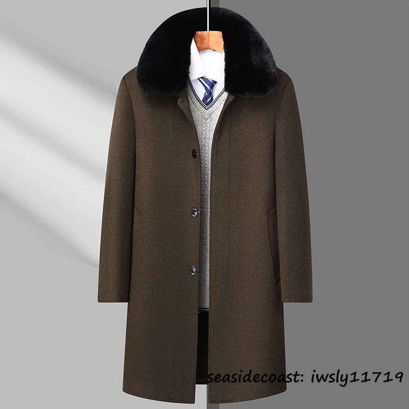 冬新品★メンズ ウールコート 裏起毛 ビジネスコート 厚手 超防寒 高級*WOOL ロングコート 紳士スーツ 超希少 ファーコート 珈琲色 L