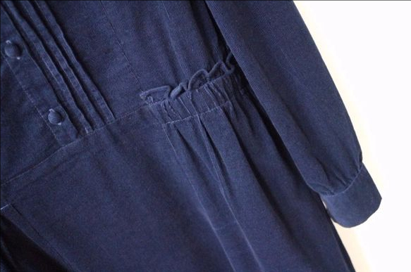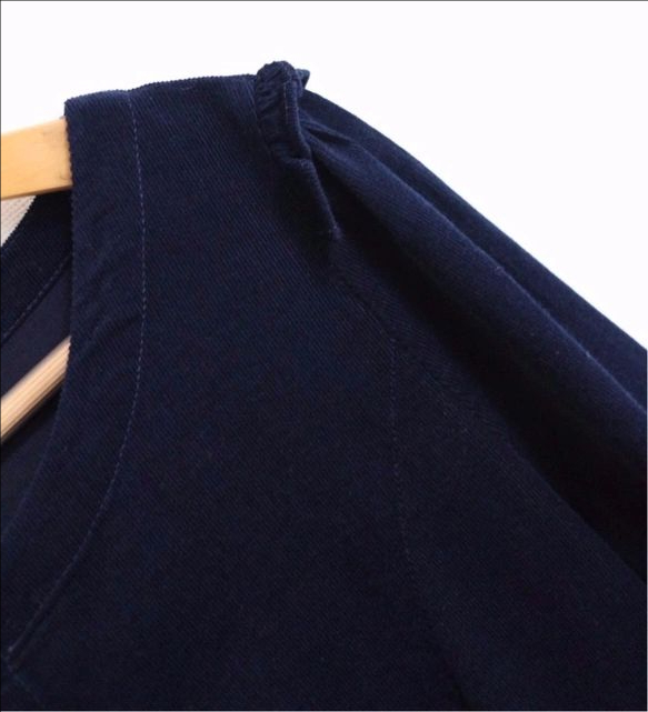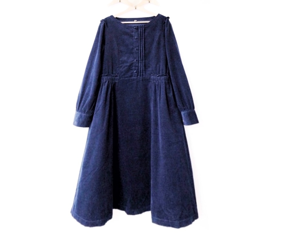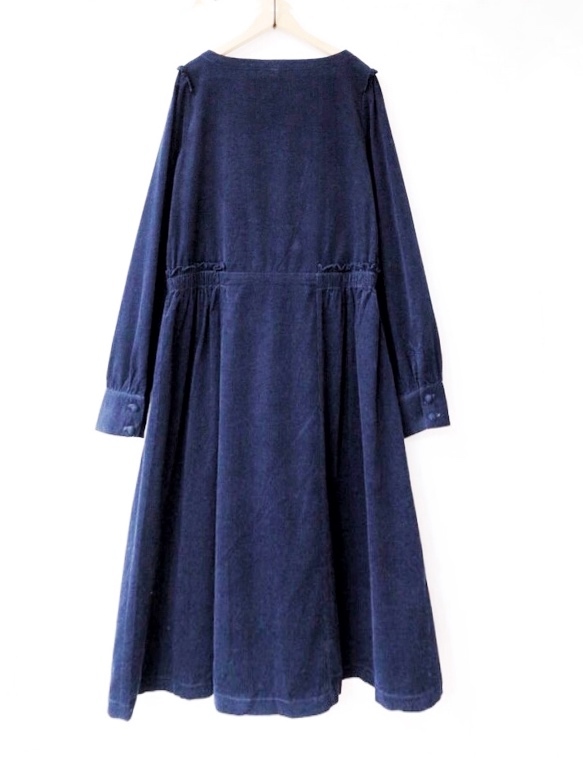 【M】ウエストフリル付両脇ポケット有大人可愛い長袖ワンピース♪
