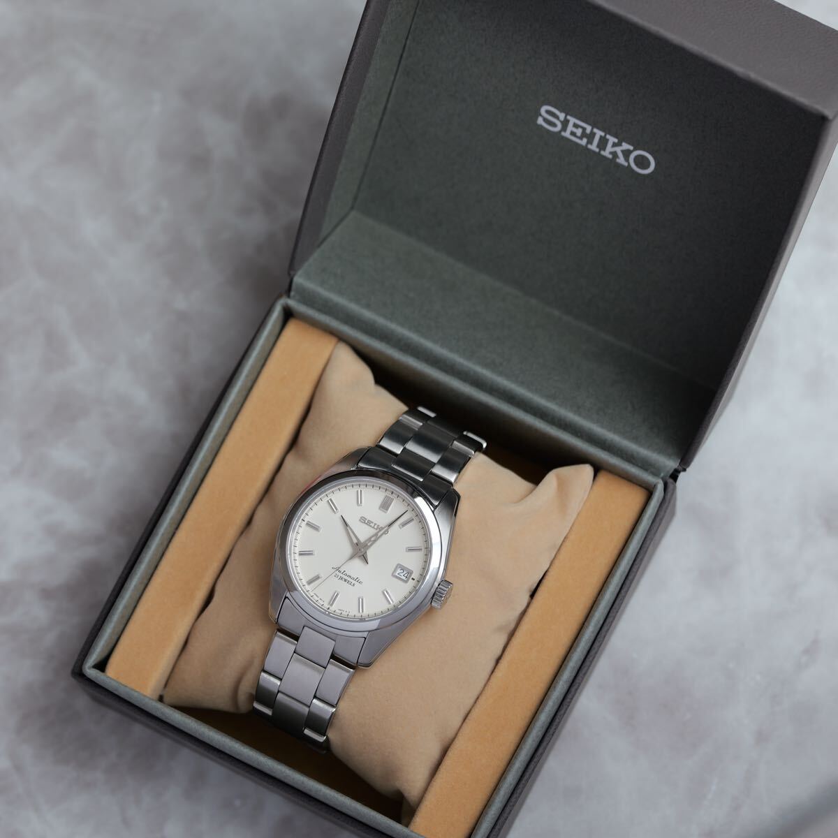 | ご覧いただきありがとうございます。 セイコー6R15搭載の自動巻きモデルです。流行に左右されないシンプルなデザインで、幅広いシーンでご使用いただけます。 竜頭は2段引きで時刻調整、1段引きで日付調整。手巻き・ハック機能も備えています。 ■ サイズ ケース幅(リューズ除く):38mm 縦:約44.8mm ガラス径:約31mm 厚さ:約11.6mm ラグ幅:20mm |