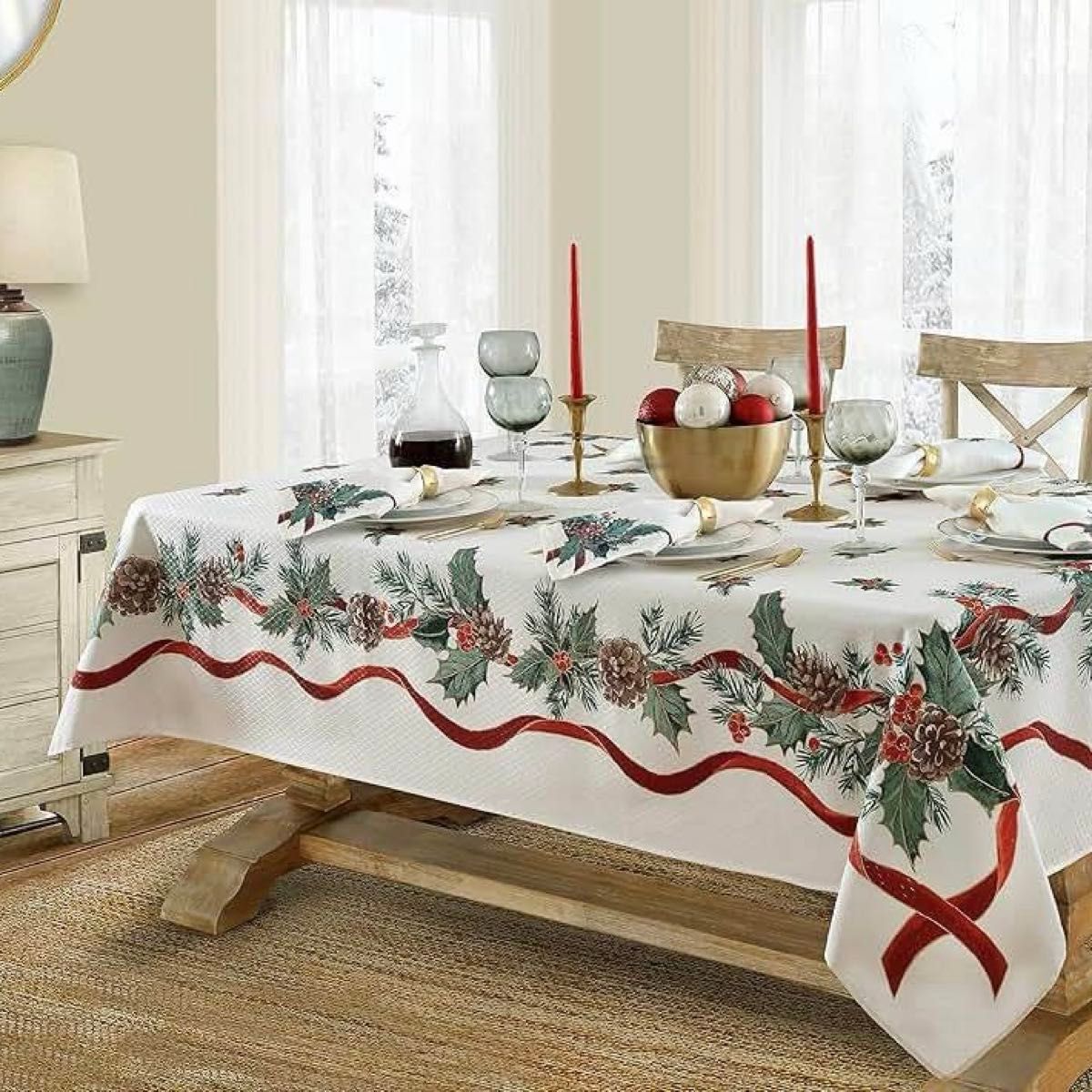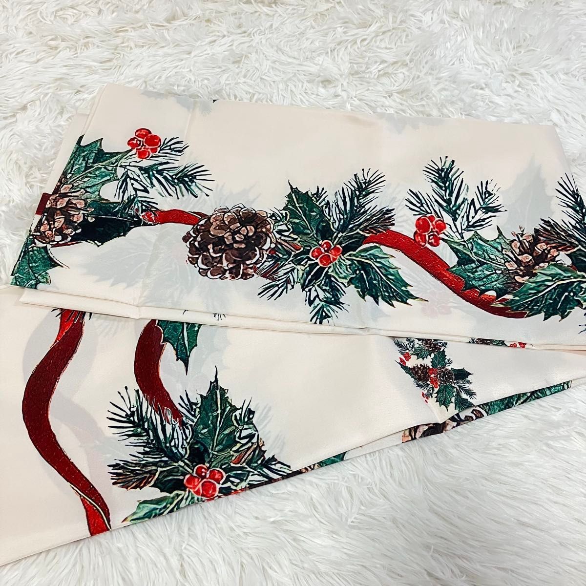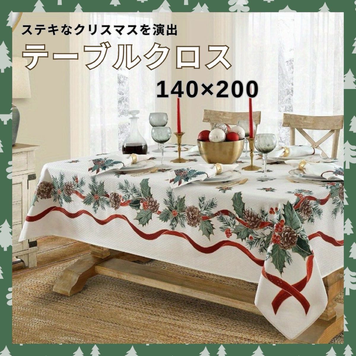 クリスマスの食卓を華やかに彩る、大判サイズのテーブルクロスです。