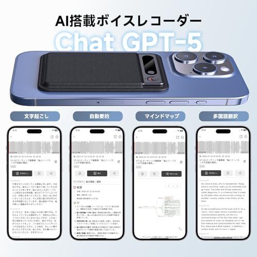 【先端AI搭載新型ボイスレコーダー】kebrumaのボイスレコーダーは、録音、自動文字起こし、翻訳、要約、マインドマップ作成機能まで統合する革新的AIボイスレコーダーです。文字起こし機能付きボイスレコーダーは80種以上の言語で迅速かつ正確な書き起こしを実現します。 ChatGPT-5/GPT4o/GPT4.1/o-3-miniなどなAIモデルに基づいて、ユーザーはアプリで要約と会議録を作成し、日々の作業効率を向上させることができます。