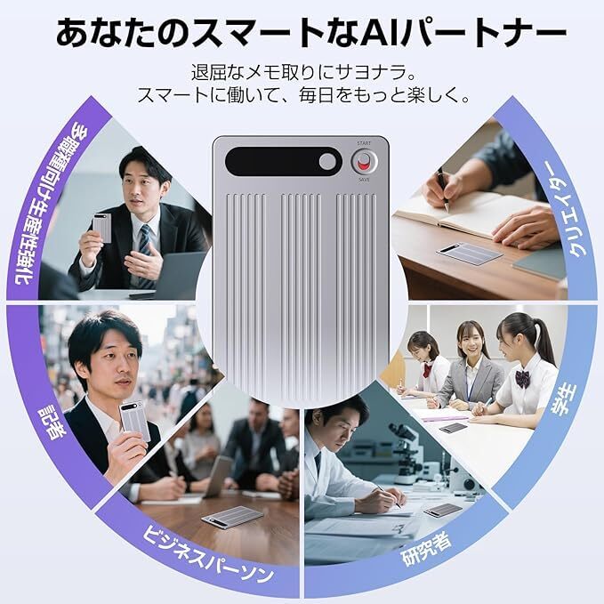 【AIアシスタント、効率向上】AIボイスレコーダーがあれば、「録音->文字起こし->要約」の一連作業がワンタッチ操作だけで即座に完了できます。 会議、通話、セミナー、インタビューや創造的なひらめきの記録など様々なシーンに合わせて、異なる形式で効率的に要約とマインドマップを作成できます。このAI議事録で複雑な情報を洗練して可視化し、日々の作業の大幅な効率化に貢献します。これからは、もう議事録に悩む必要はありません。
